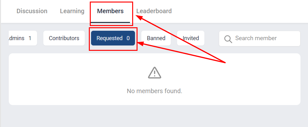 • For Private Groups: Use the Members tab to review and approve or reject requests to join under the "Requested" section. Approve Requests