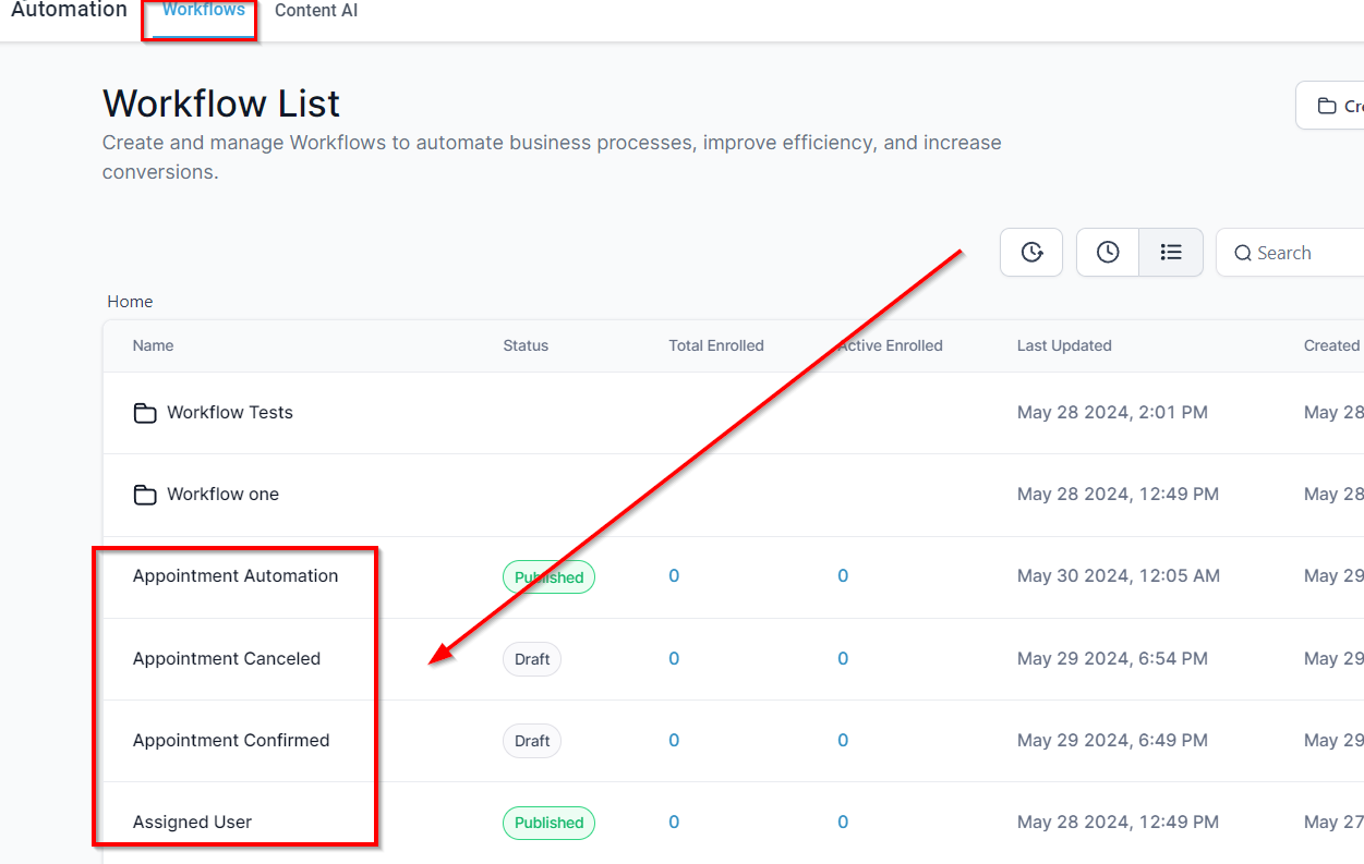 Verify the Duplicated Workflow: To confirm the workflow has been successfully duplicated, navigate to the selected subaccount. Access the automation section to find the newly duplicated workflow, which should mirror the original and be ready for use or further customization.