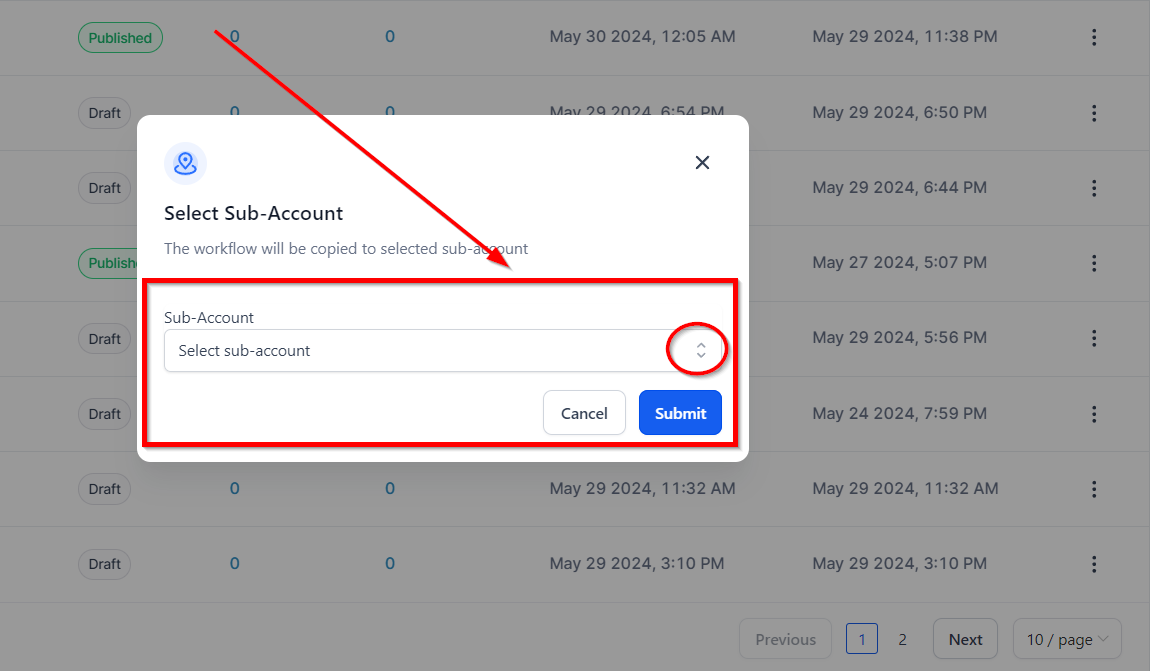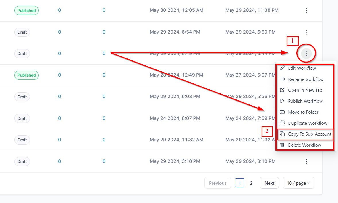 Choose the Workflow to Duplicate: Identify the specific workflow you intend to replicate in another subaccount.