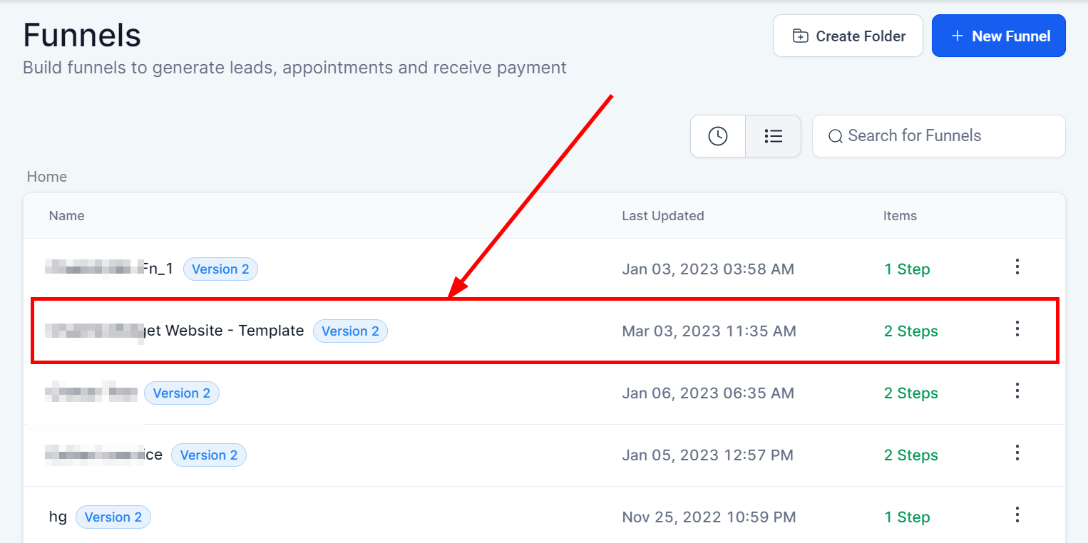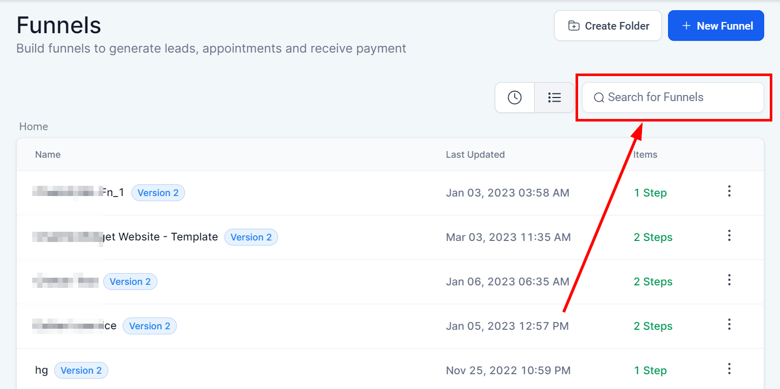 If your list of sales funnels is extensive, using the search function to locate a specific funnel by name can save time.