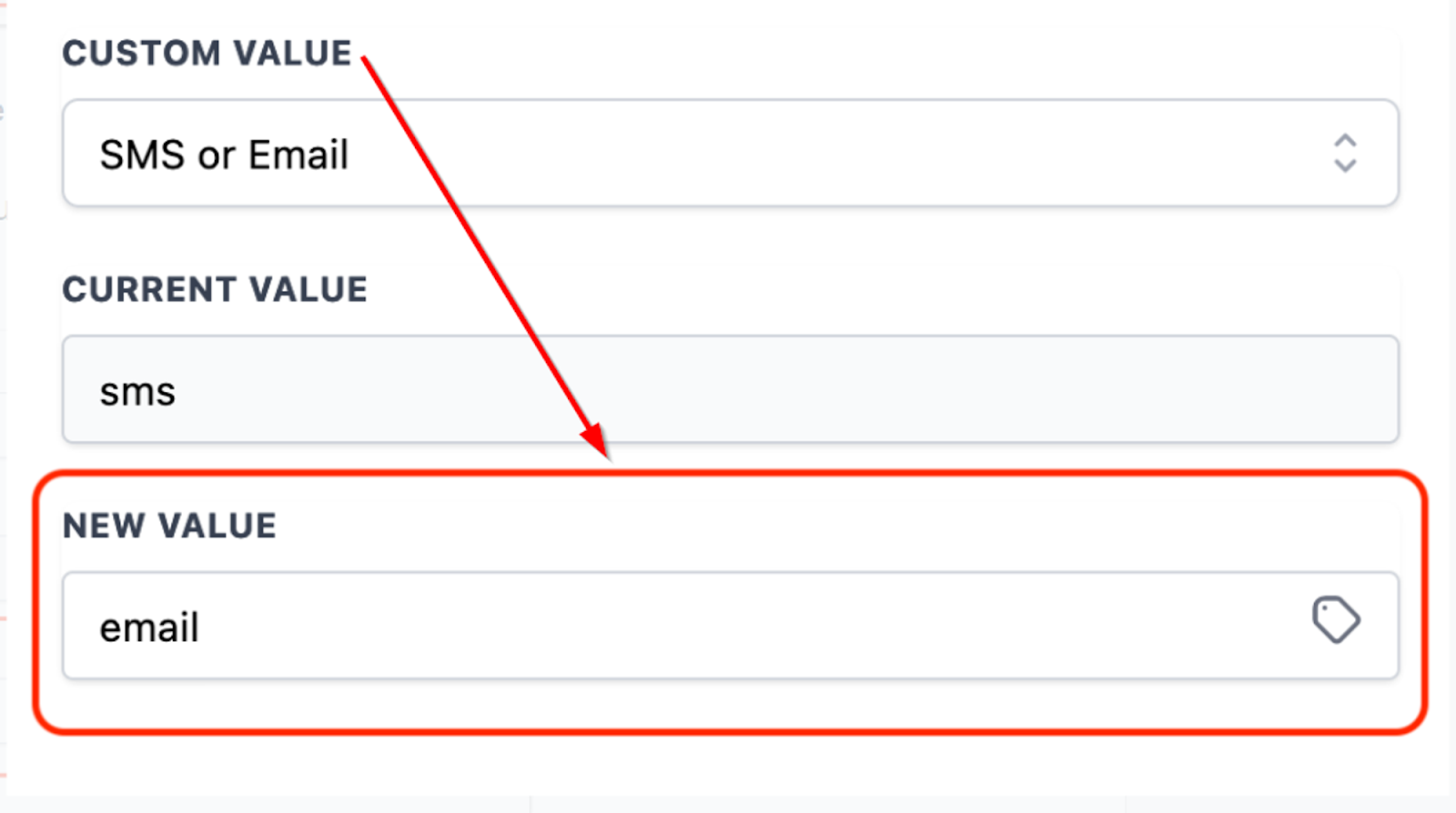 3. Select the Custom Value to Update: Choose the specific custom value you wish to update from the list of available custom values. Image