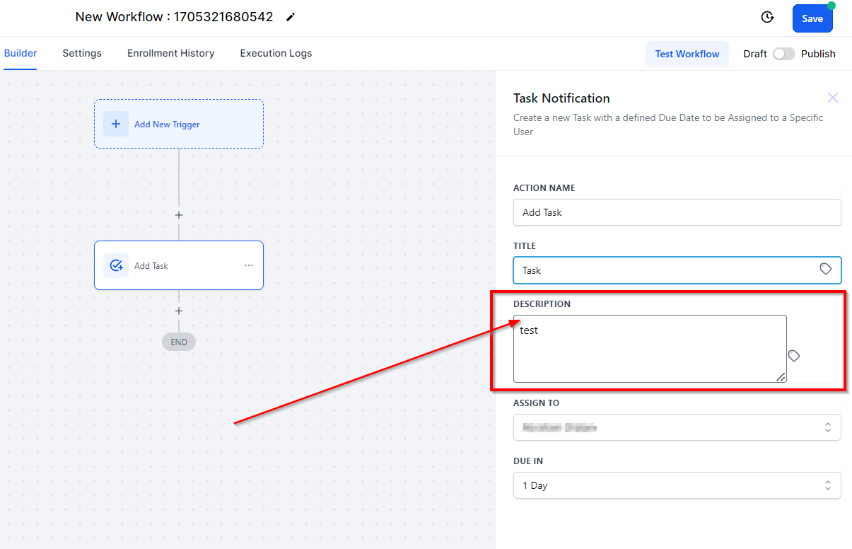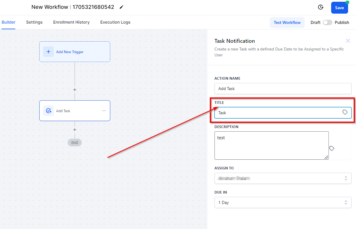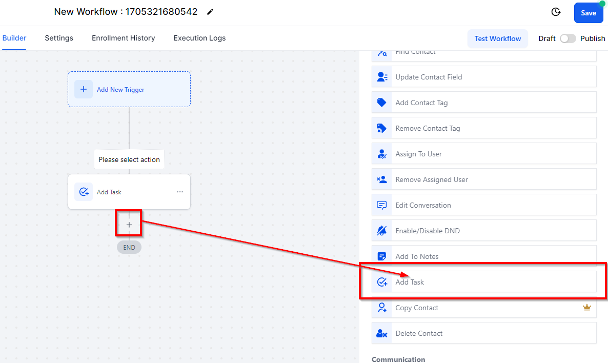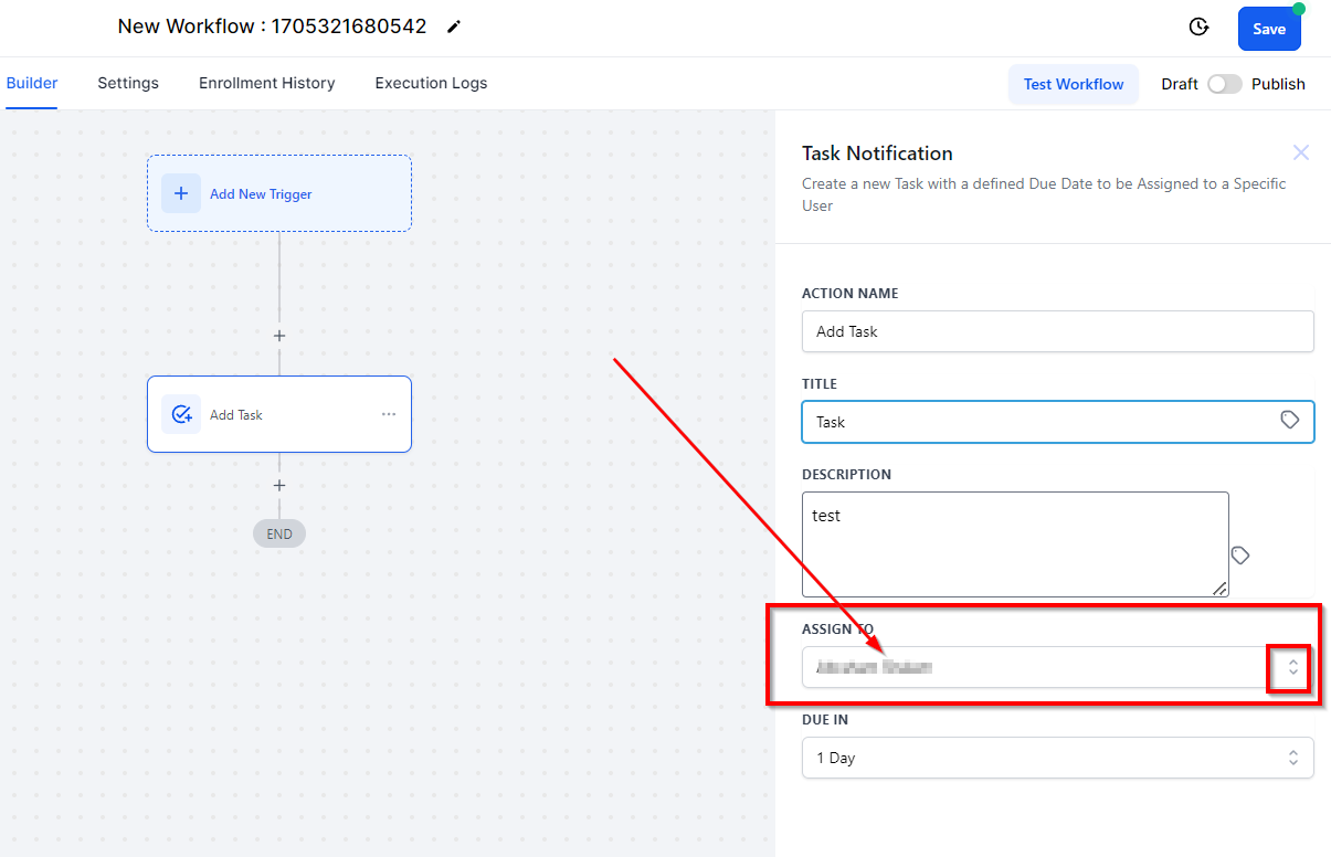 The "Add Task" action in your CRM allows you to delegate tasks to yourself or other team members. Tasks can only be assigned to active users in your account. This feature automates task creation, ensuring your team is reminded to complete critical tasks, such as scheduling follow-up sales calls.