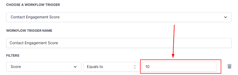 The Contact Engagement Score assigns a numerical value reflecting the interaction level of a contact with your business. A higher score indicates strong engagement and responsiveness to your campaigns, while a lower score suggests less activity. The Contact Engagement Score Trigger allows you to segment your contacts based on this score, enabling targeted marketing efforts toward those who need it most. This trigger in the contact management section initiates your workflow whenever a contact's engagement score changes.