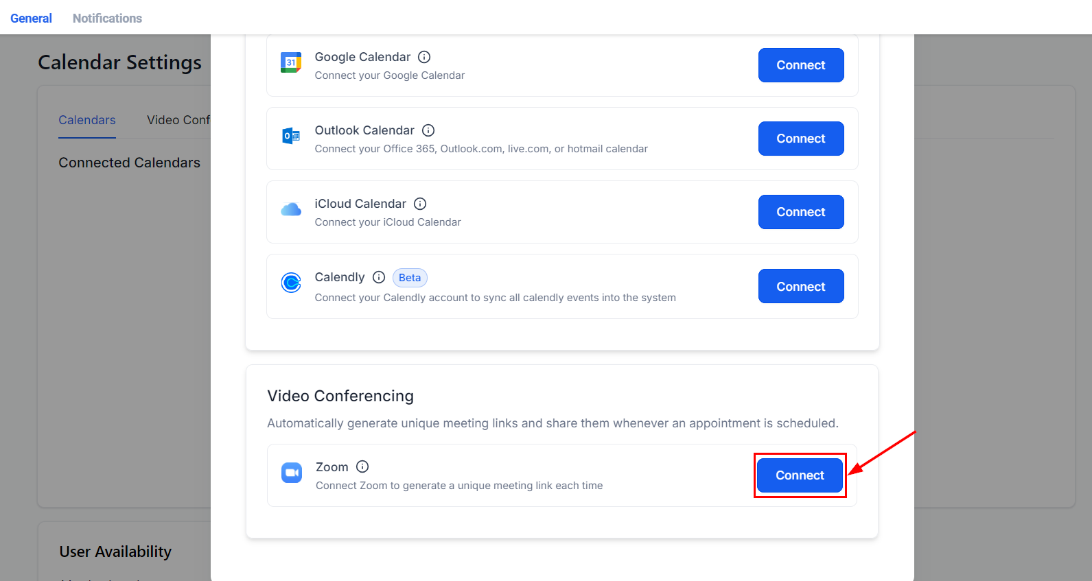 Streamline your virtual meetings by linking your Zoom account to your calendar bookings. This integration ensures smooth scheduling and management of online meetings, keeping everyone informed and your workflow efficient.
