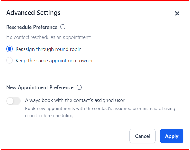 When a contact reschedules using the booking widget, you can decide how to handle the reassignment: