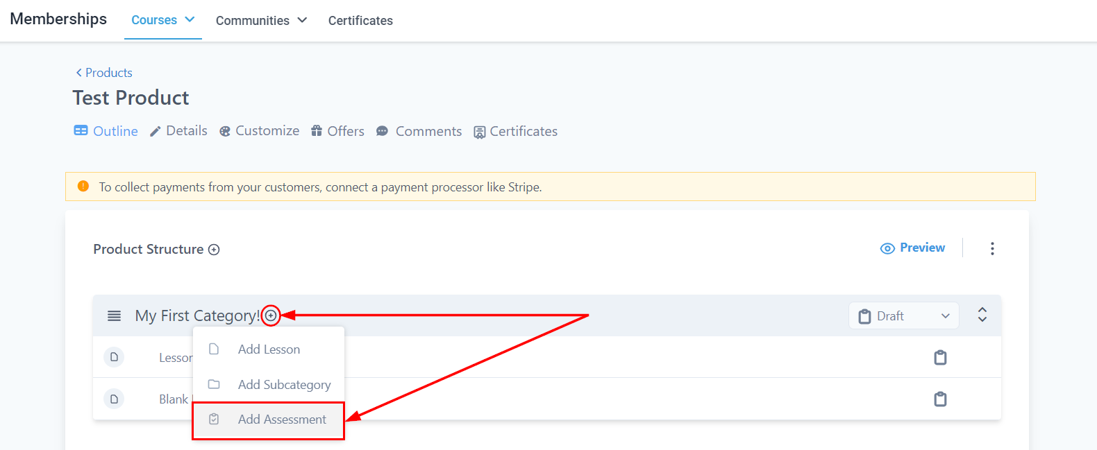 Incorporate assessments into your product to evaluate how well learners understand the material. You can select either a Quiz or an Assignment as the type of assessment and ensure each has a title.