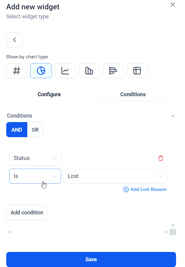 2. Apply a Filter for a Specific Lost Reason: Add a filter to target a specific Lost Reason.