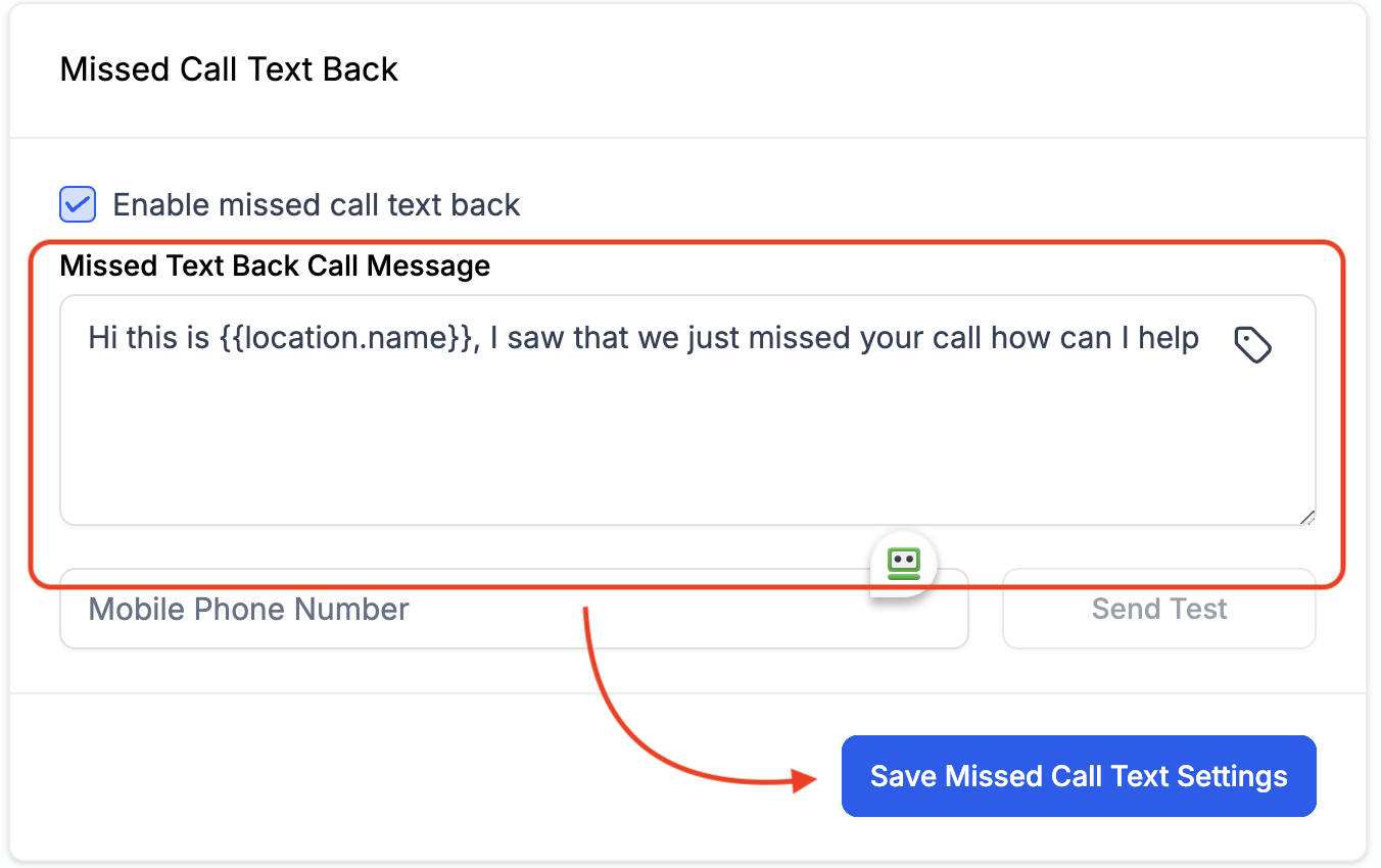 1. Access the Feature: Navigate to the bottom right corner of your Business Profile, where you’ll find the option to set up the missed call text back feature.