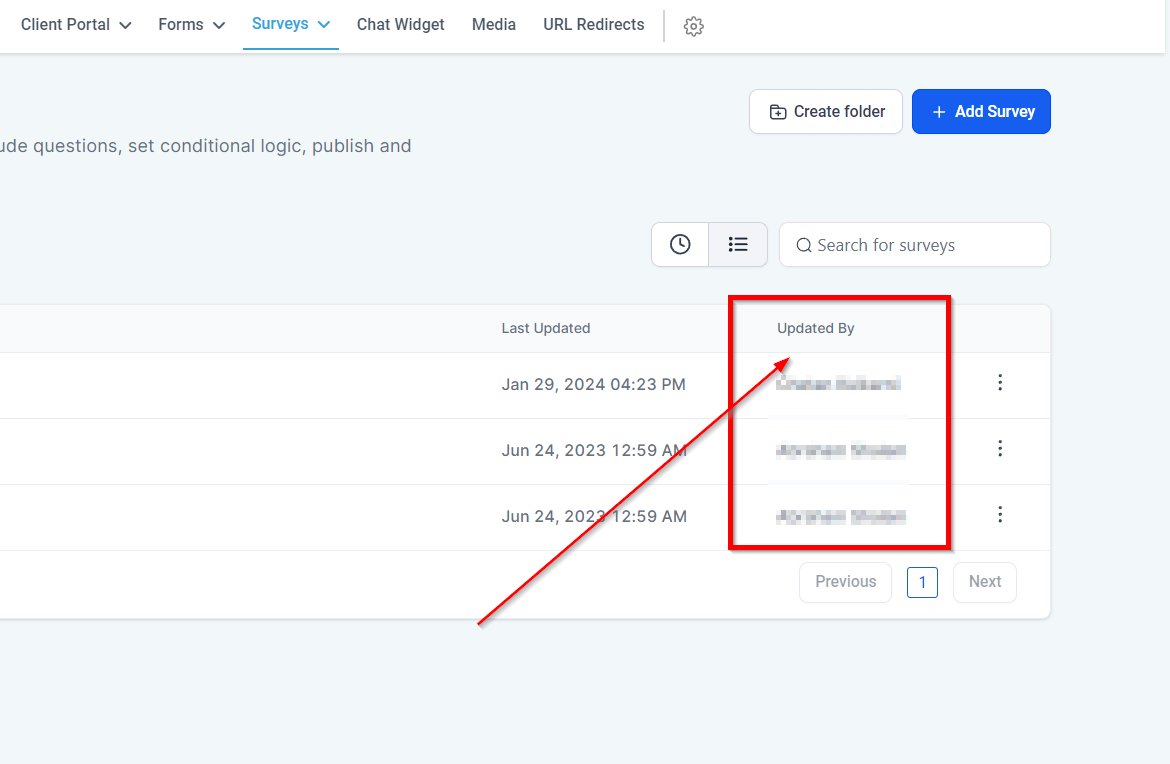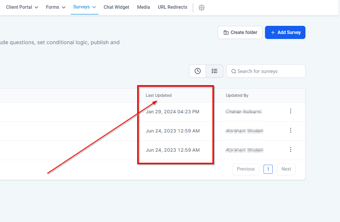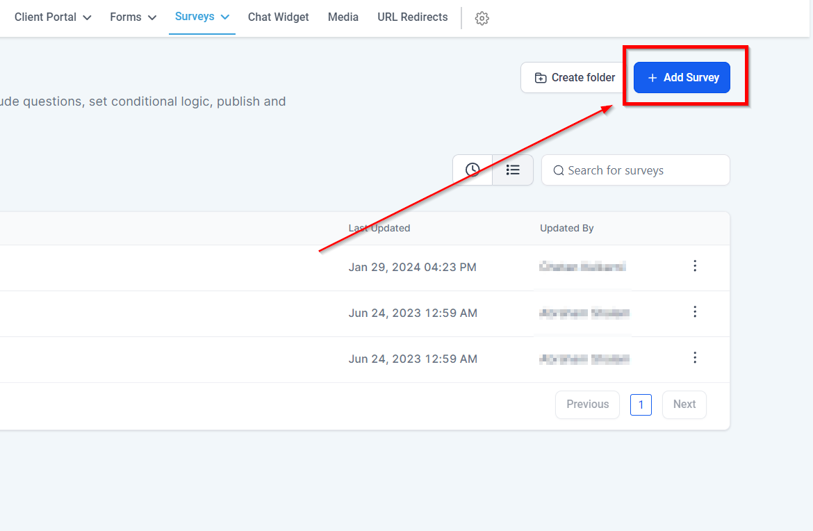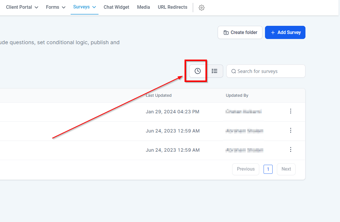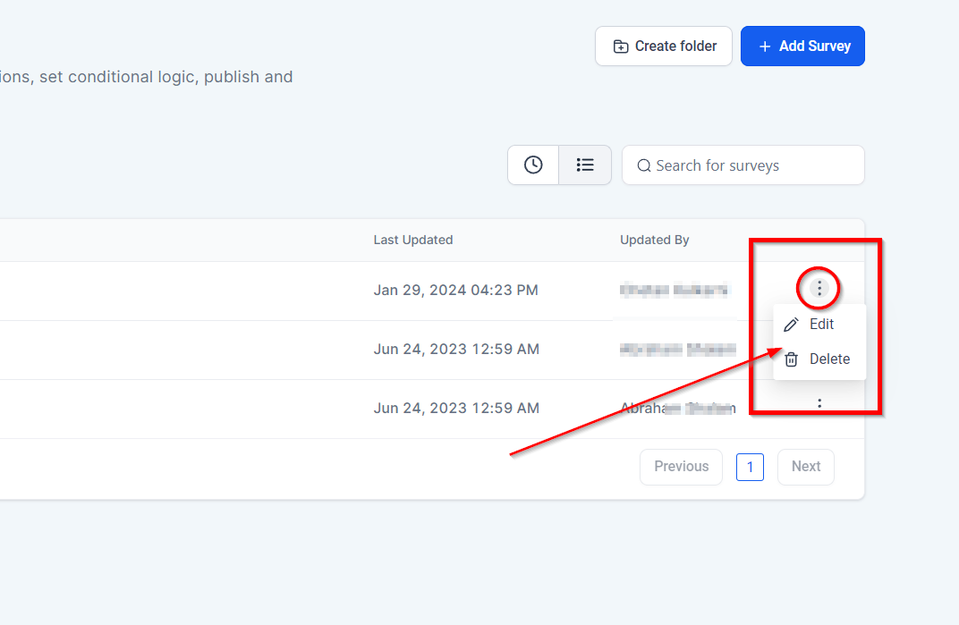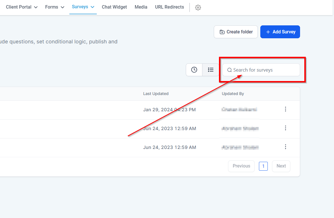 If you have a large number of surveys, use the search bar to quickly find a specific one by typing its name.