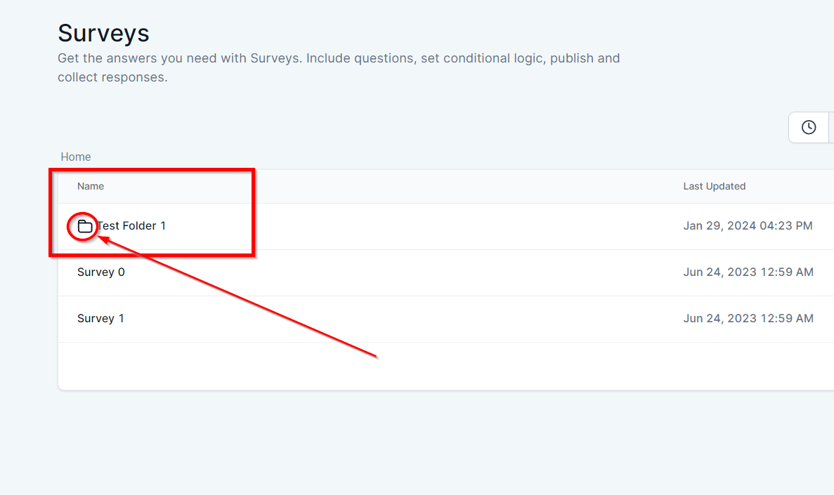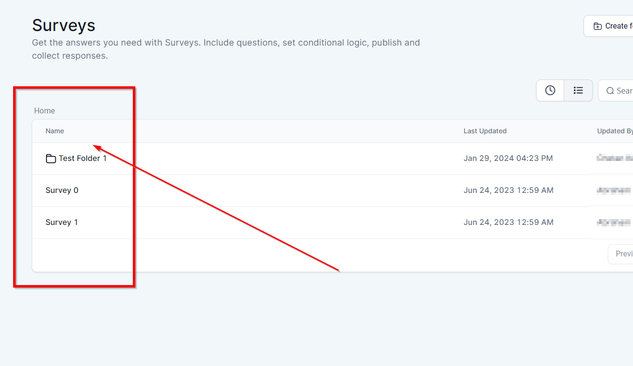 If you need to organize your surveys, you can create a new folder by clicking on the "Create Folder" button. After naming your folder, click "Confirm" to save it.