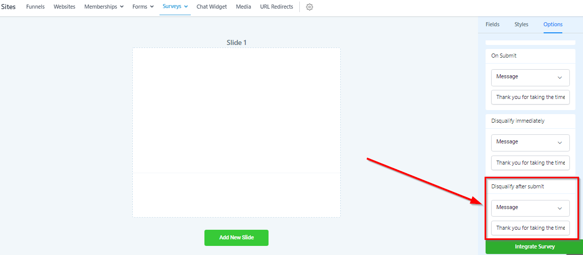 This option allows you to disqualify a respondent after they complete the entire survey.