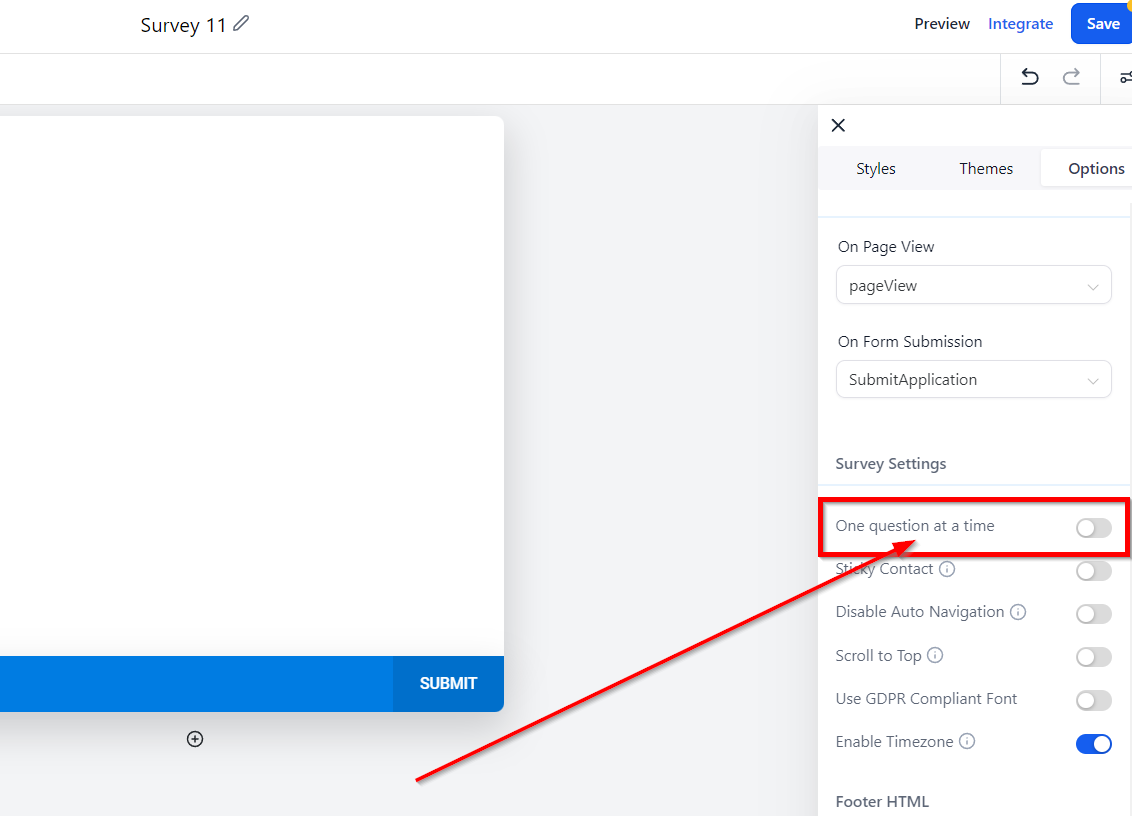 By enabling this, only one question is shown per slide, requiring respondents to answer each question before moving to the next.