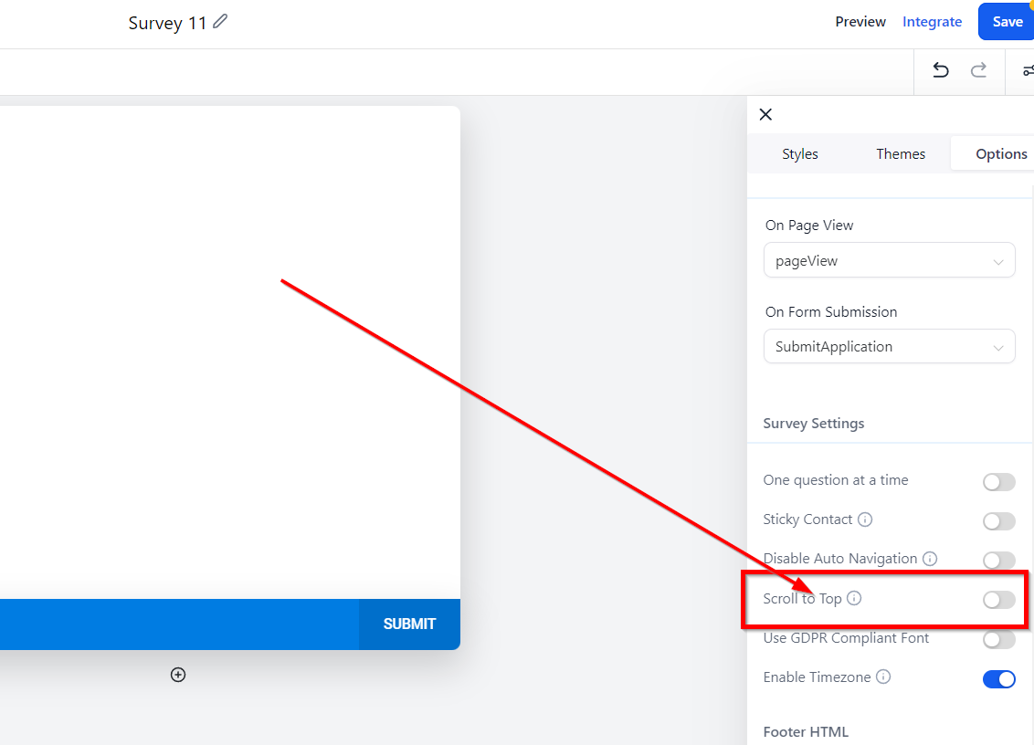 Toggle this setting to automatically scroll to the top of the page after each action.