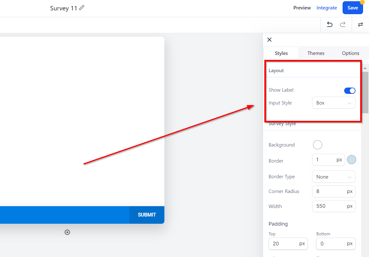 The Styles tab allows you to modify the appearance and overall design of your survey.