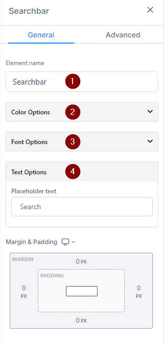 - Text Options: Customize the placeholder text within the search bar.