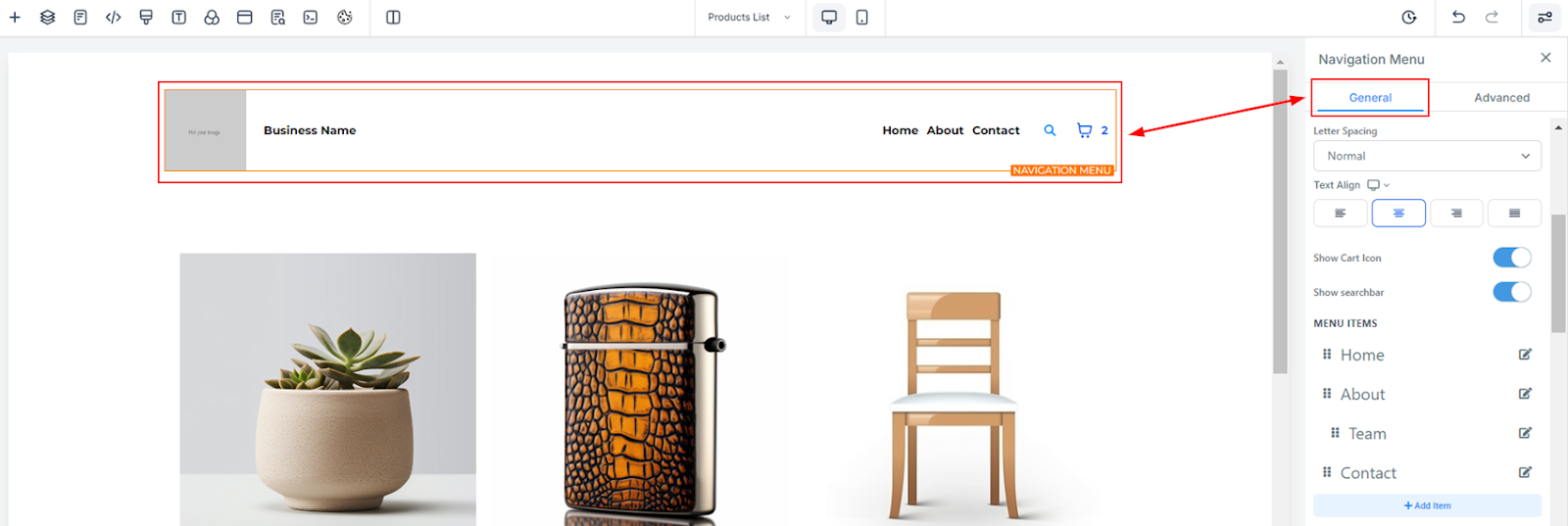 If the search bar element doesn’t appear, ensure that your site is correctly set up as a store. You can refer to our "How to Set Up an E-commerce Store" guide if necessary.