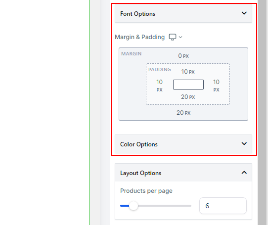 The text related to products can be customized using various font options, including Google Fonts for a personal touch. Additionally, you can adjust the Margins, Padding, and Colors of this element to fit your store’s theme.