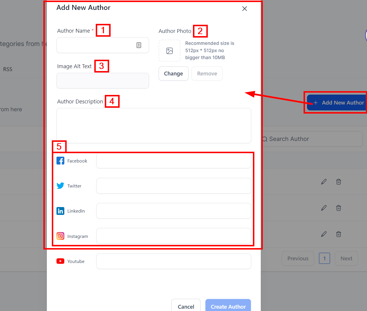 Author's Image: Upload a picture, ensuring it’s 512px by 512px and under 10MB.