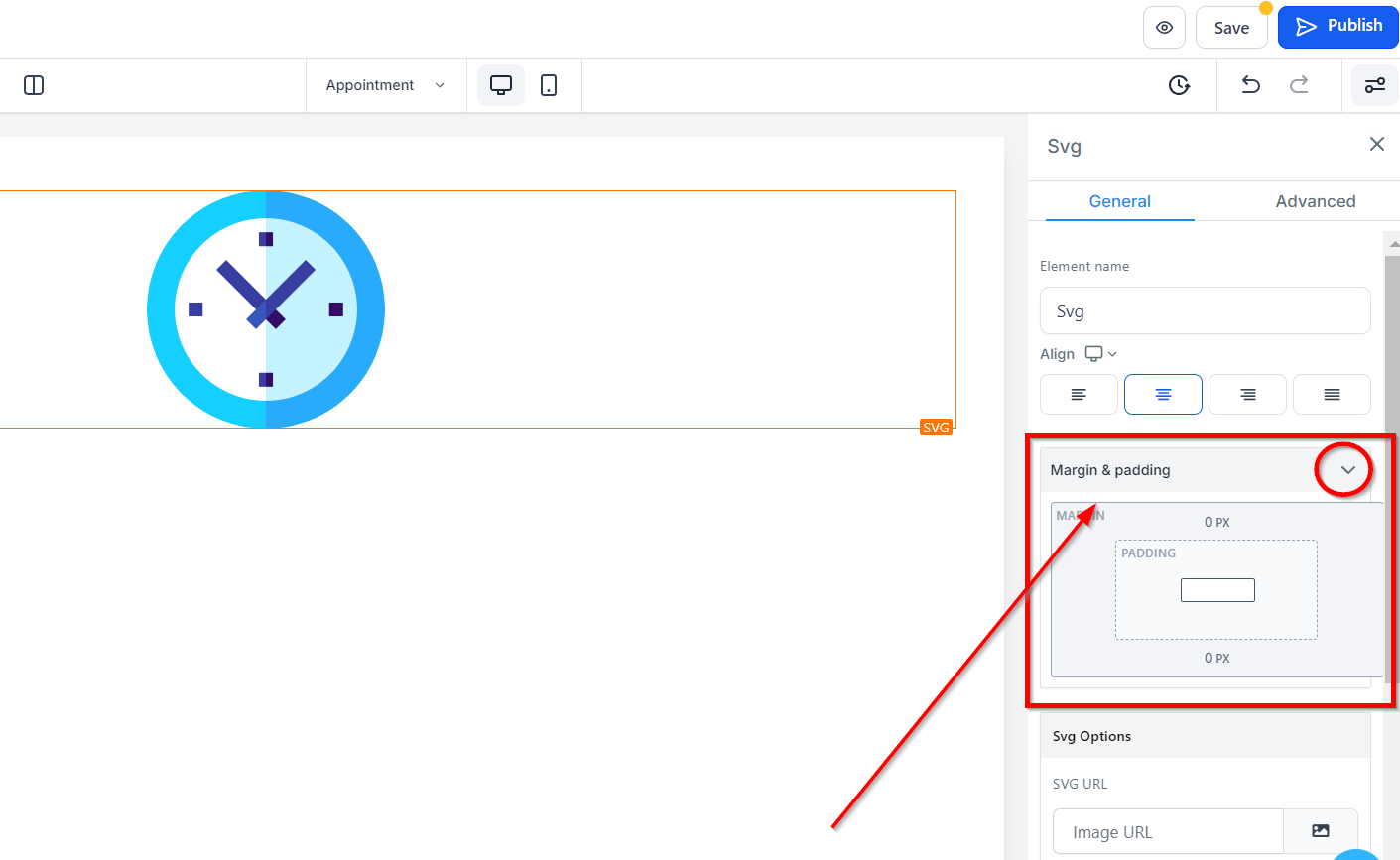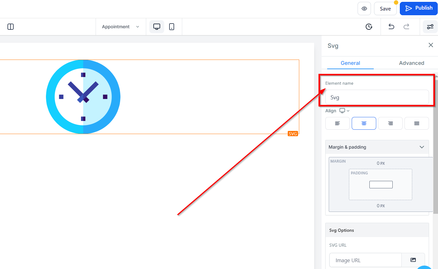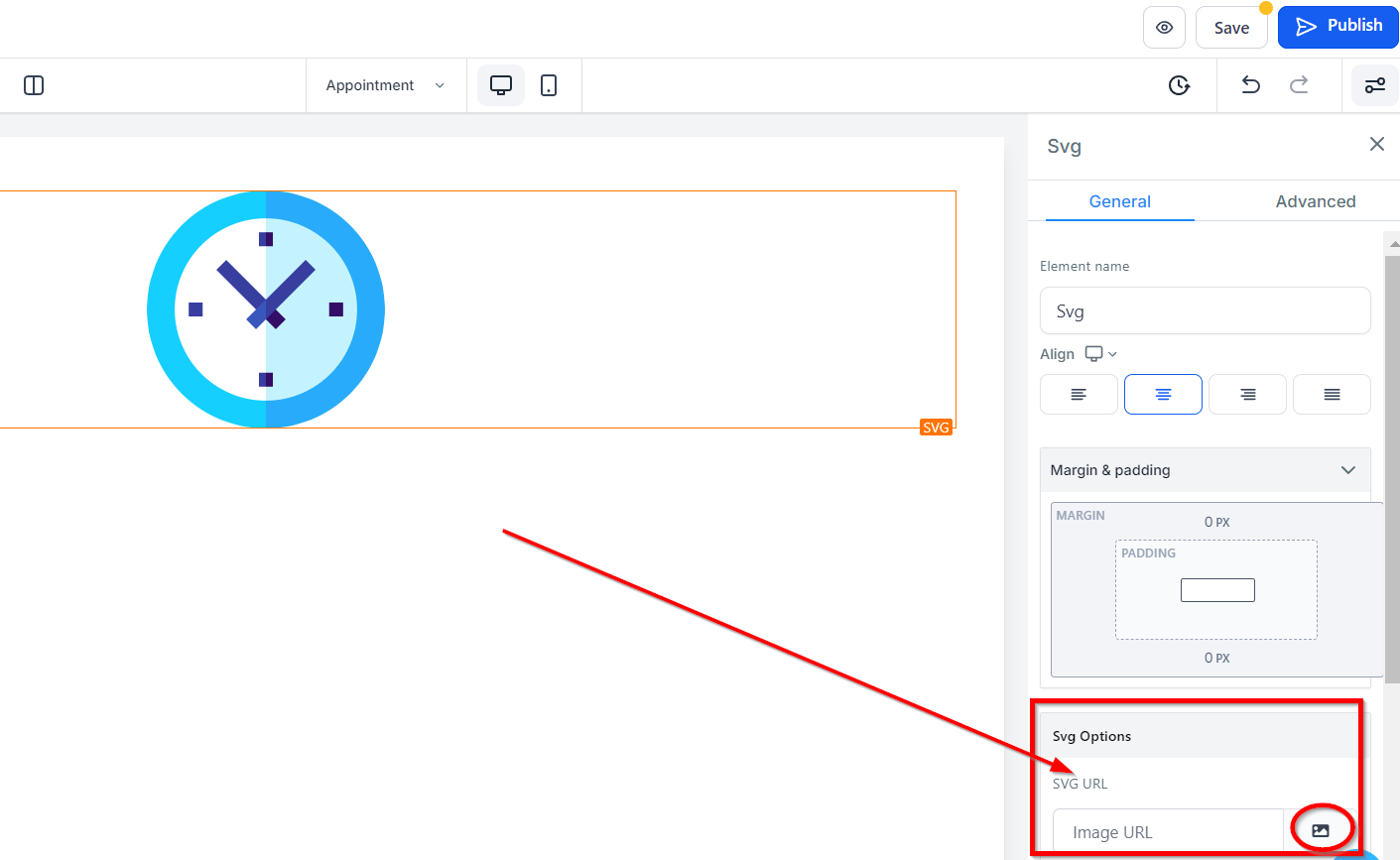 To include an SVG on your page, simply input the URL in the designated SVG URL field.