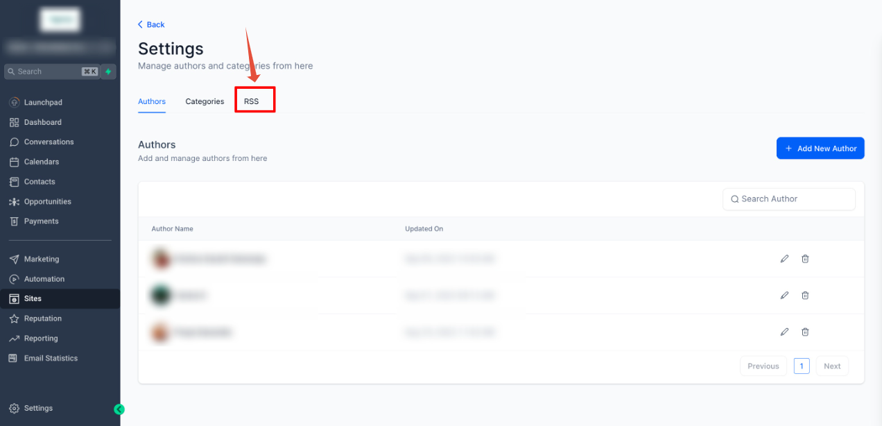 3. Find the RSS Feed Configuration