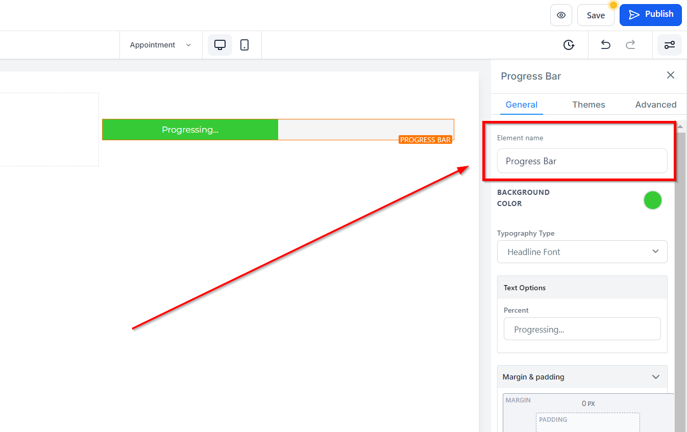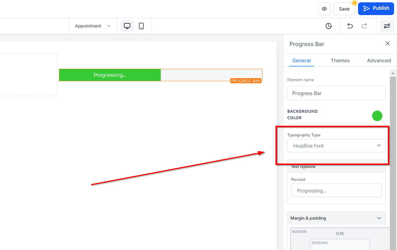 Under Spacing Options, you can alter the top and bottom margins of your progress bar to better fit the overall layout of your page.