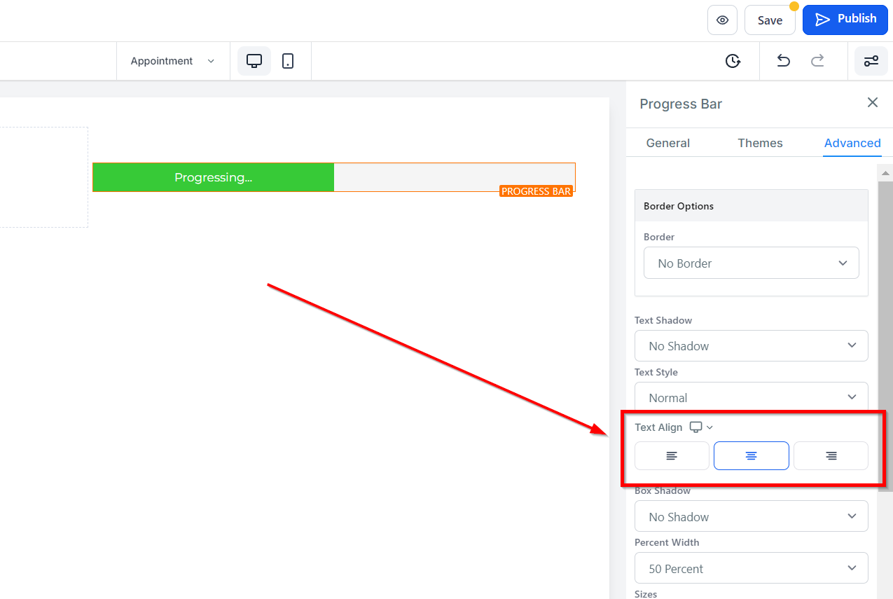 Text Align gives you the flexibility to place your text on the left, center, right, or justify it within the progress bar.