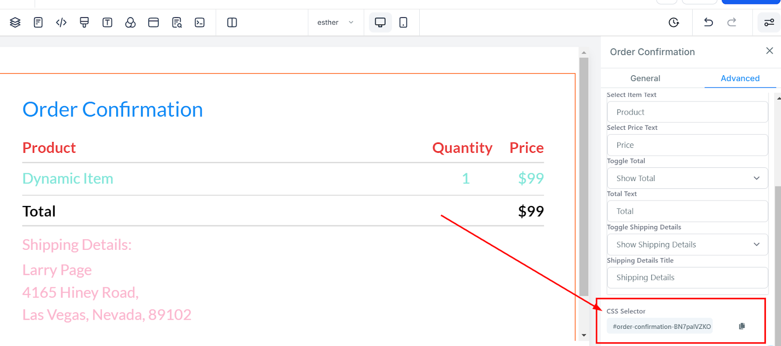 CSS Customization: If you need to copy the custom CSS code for the element, click the "Copy" icon to obtain the reference.