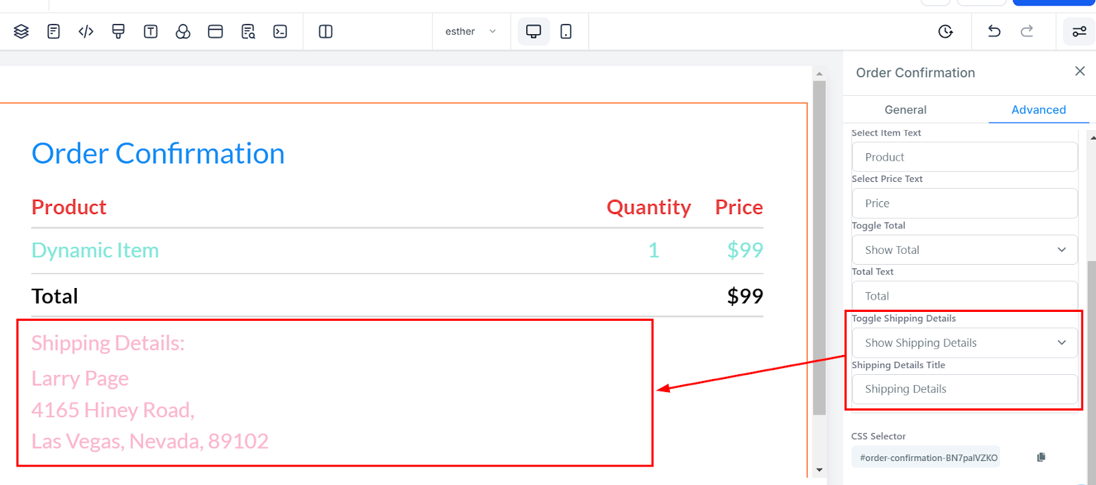 Shipping Details Toggle: Choose to display or hide the Shipping Details field.