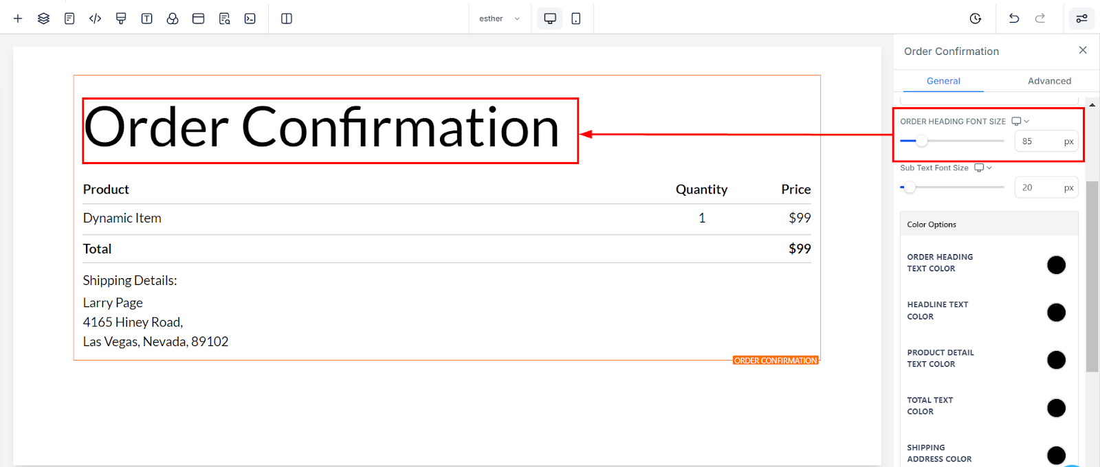 Order Heading Color: Edit the color of the order heading text.