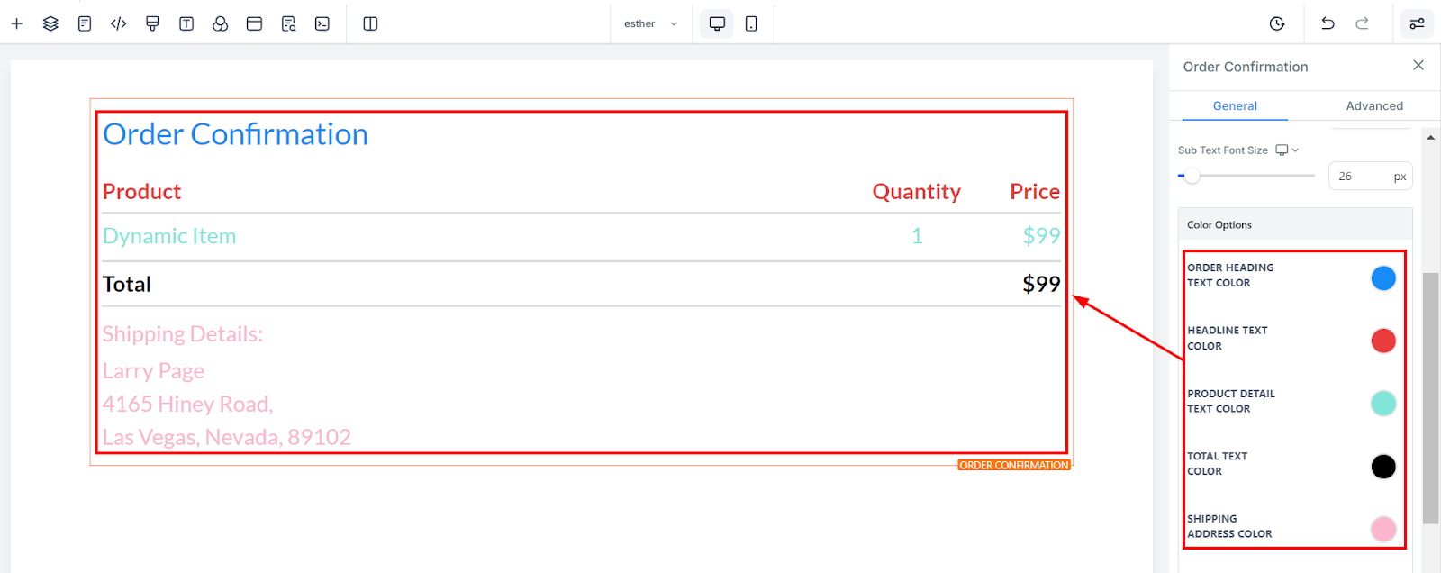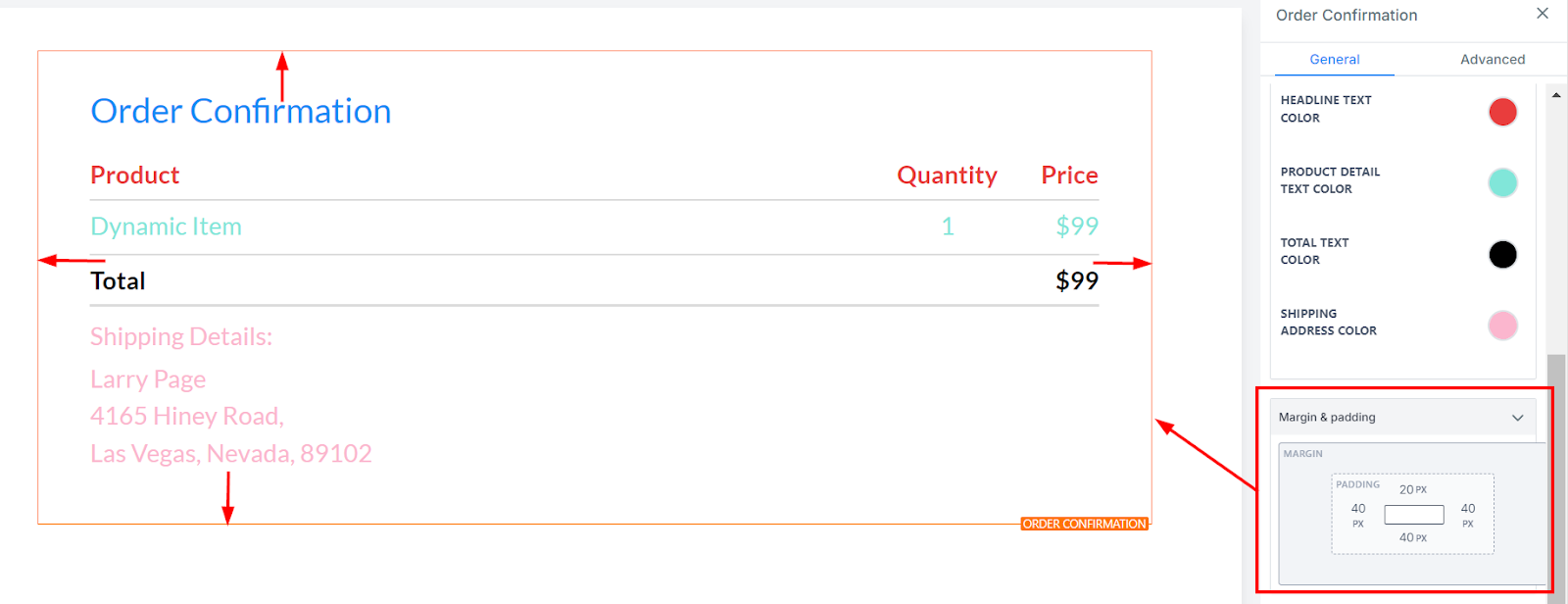 Shipping Address Color: If a shipping address is included, you can change its color here.