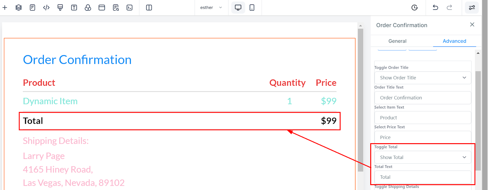 Total Toggle: You have the option to show or hide the "Total" field.