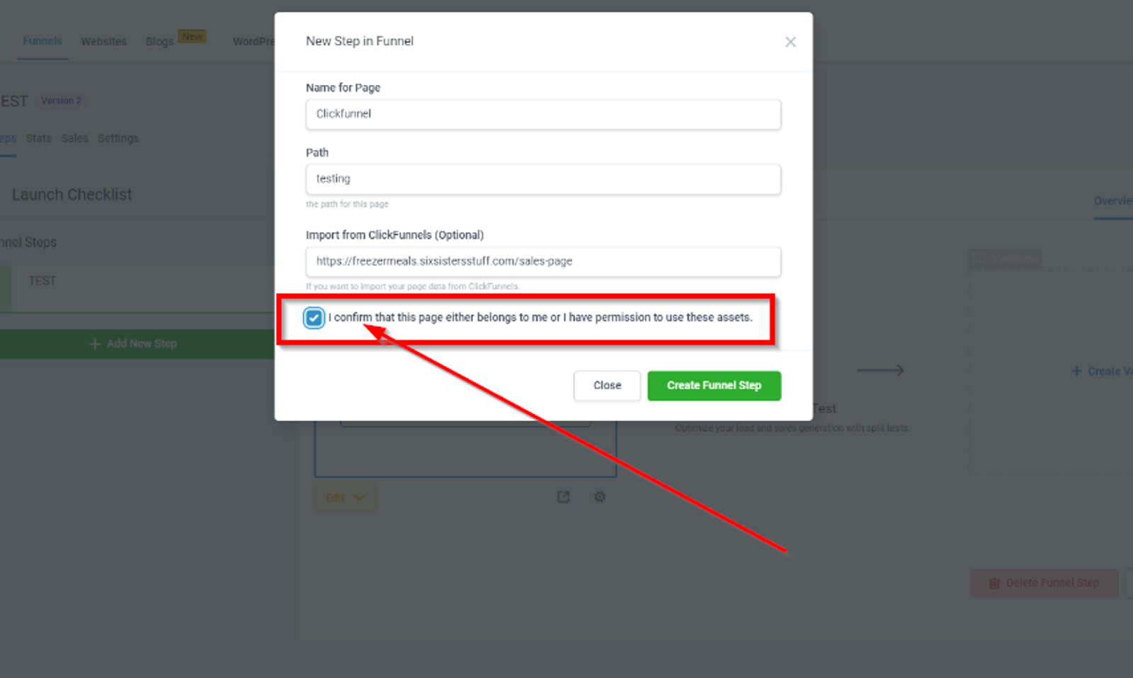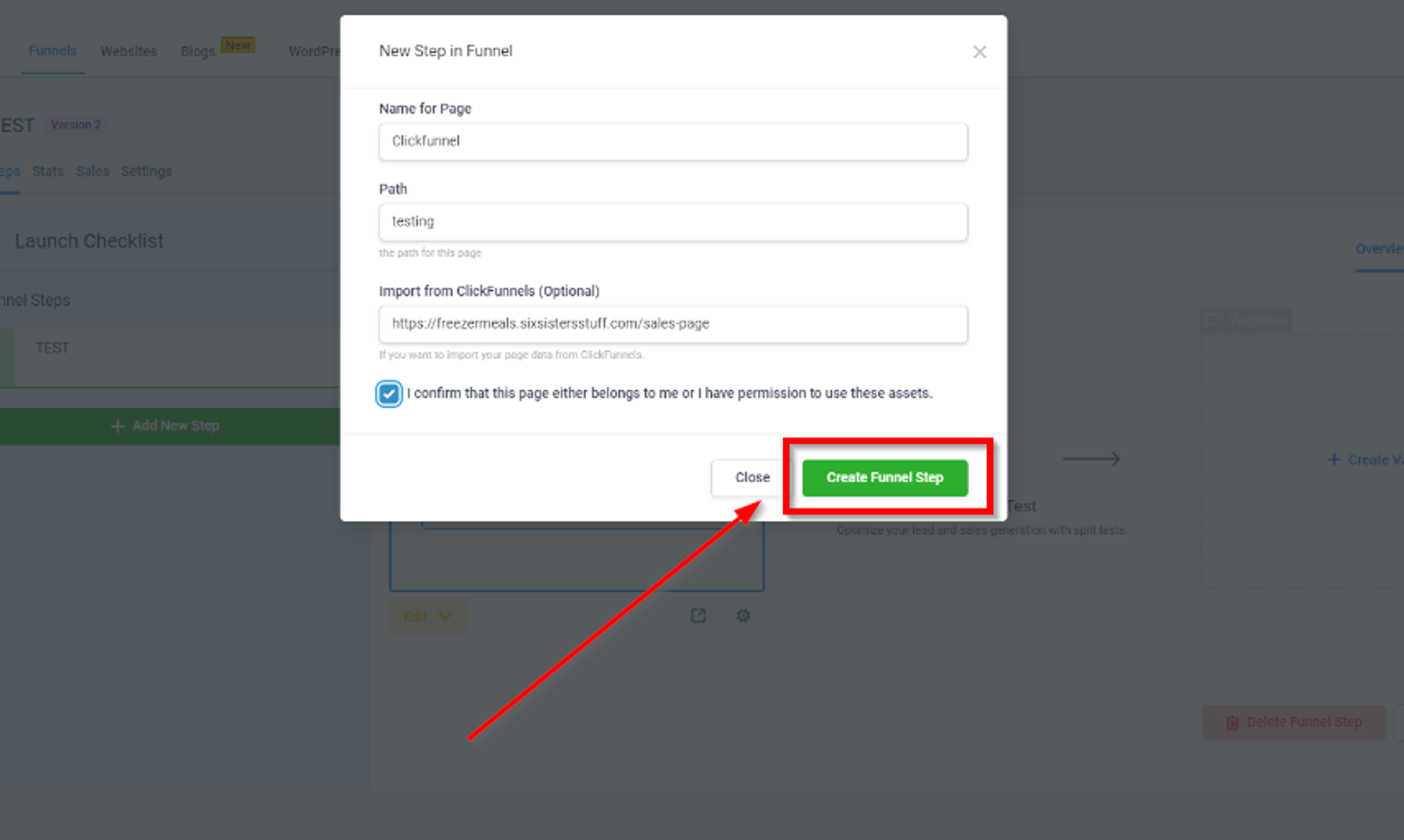 6. Click "Create Funnel Step" to Finalize