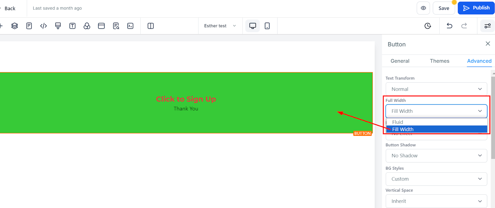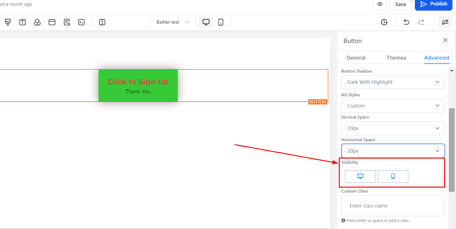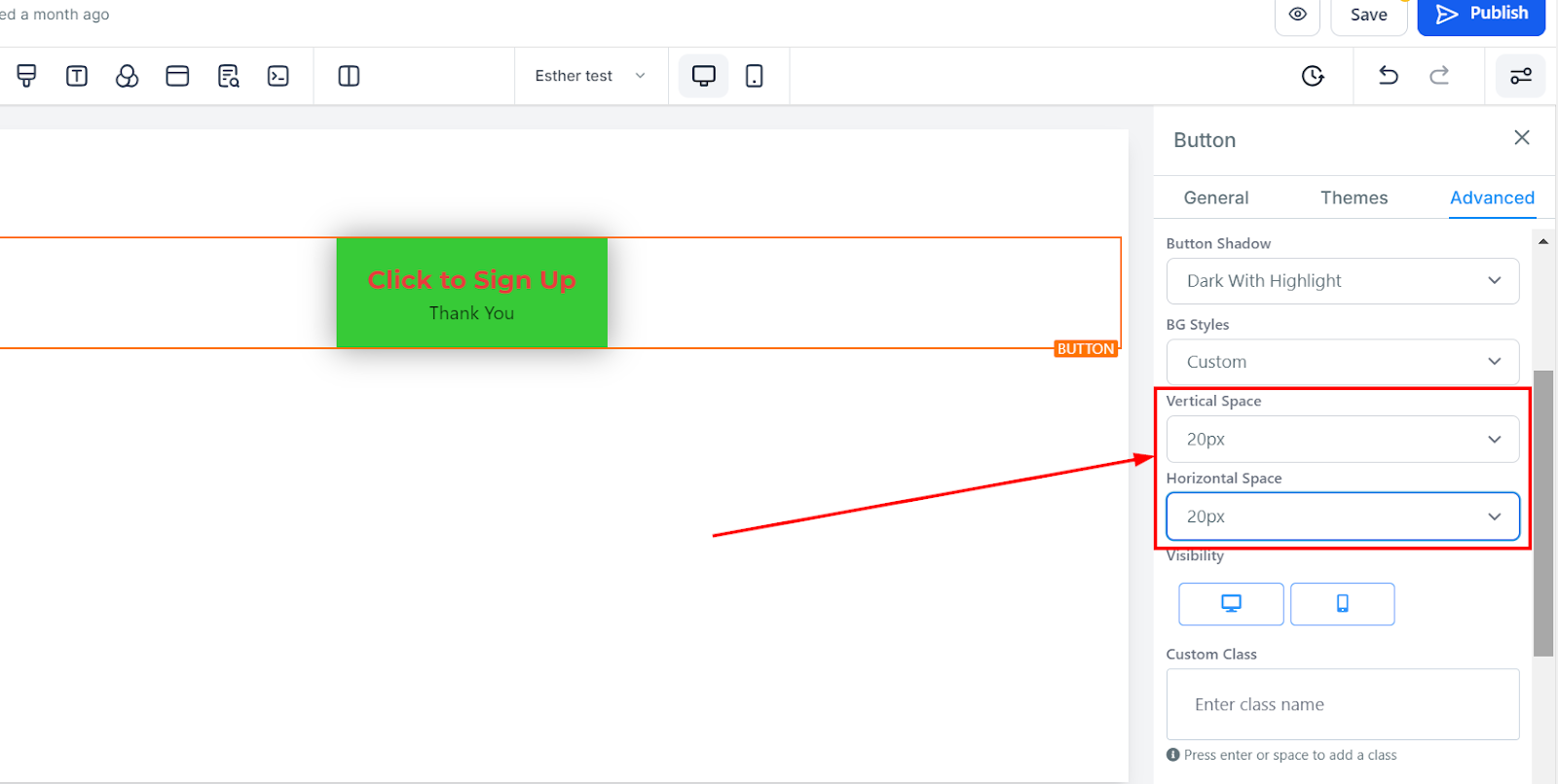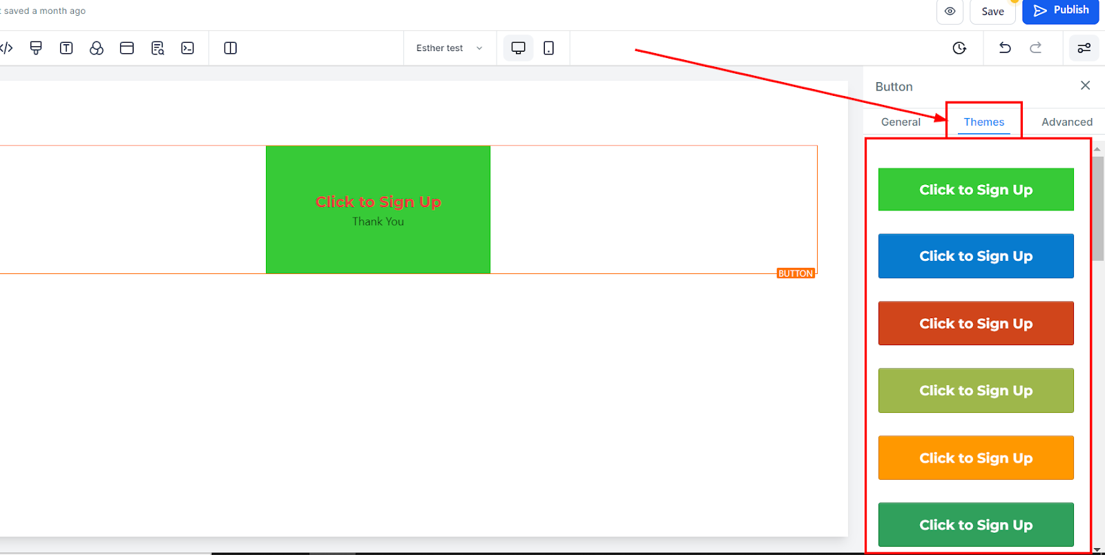 To change the background color of your button, click on the button and choose your desired shade. If your preferred color isn’t listed, enter a color code to apply a custom color.