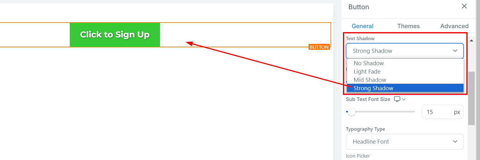 You can add a shadow effect to the button text. Choose how light or dark you want the shadow to be.