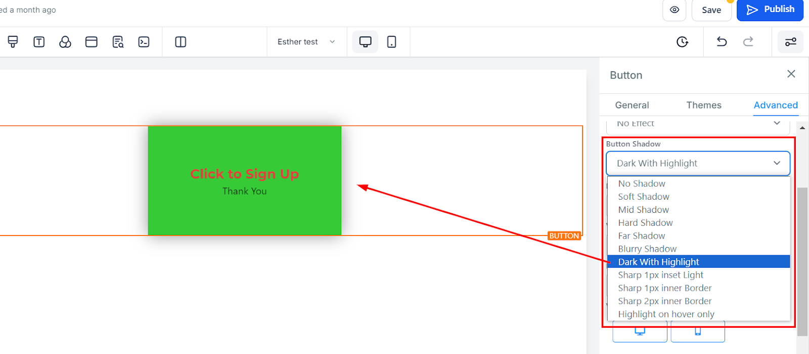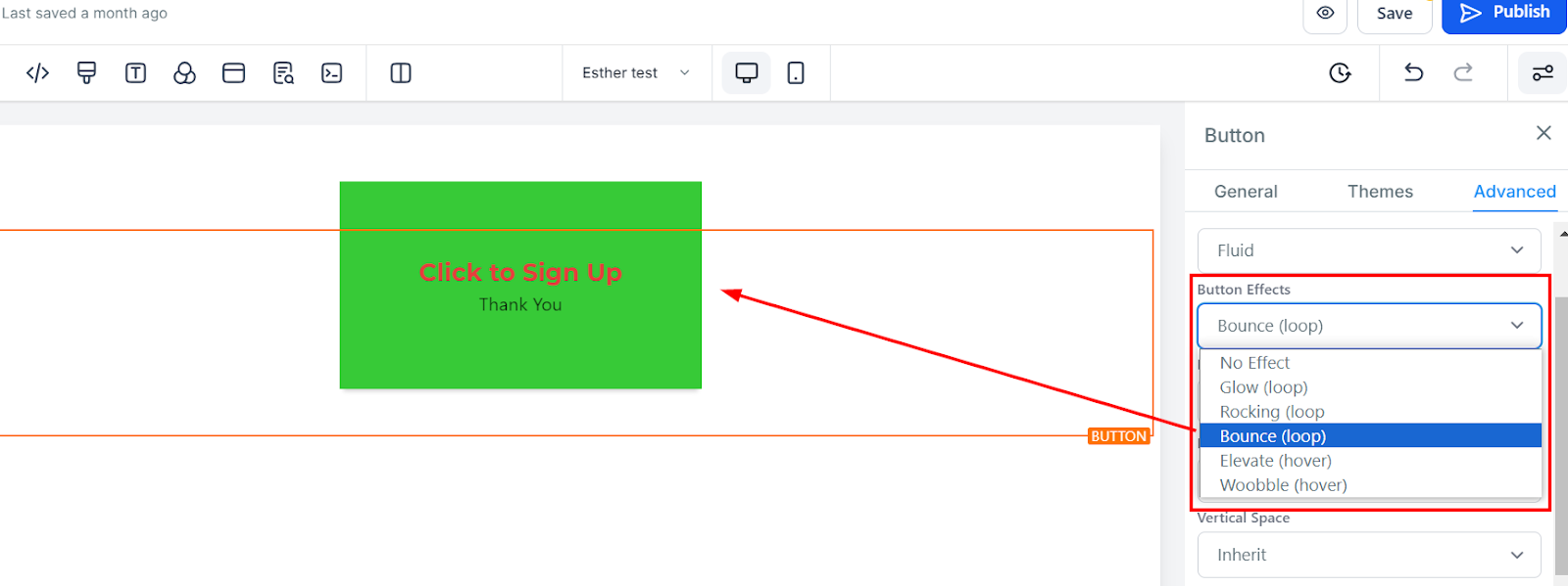 Apply visual effects to your button by choosing from the available effect options.