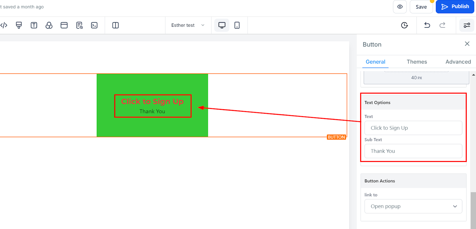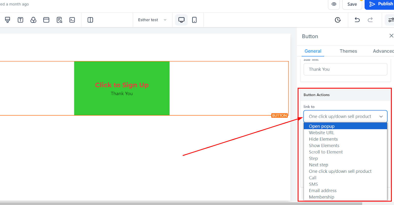 You can link the button to any URL, page, or element by selecting the relevant option.