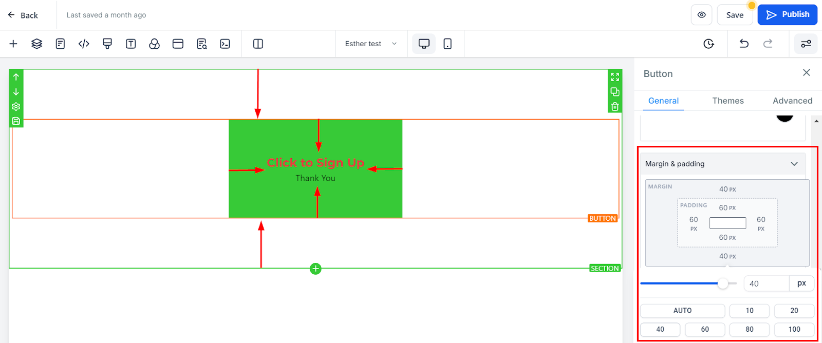 Control the button’s height and width by modifying these settings.
