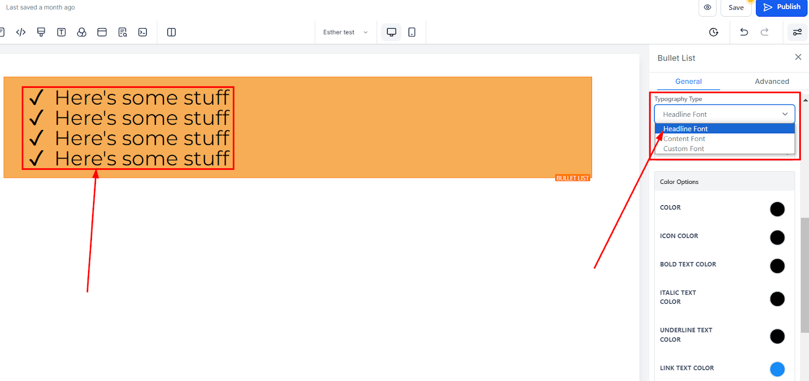 Select a custom typography for your text, or use the default headline or content font options. You can choose from a list of available fonts to match your design.