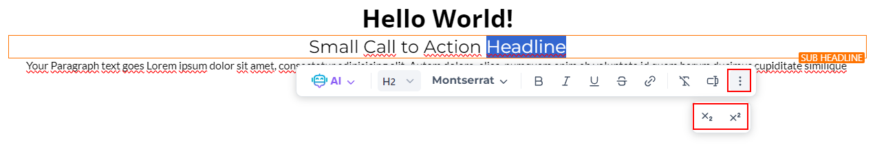 For additional formatting, such as Subscript or Superscript, click the three dots icon to reveal more options.