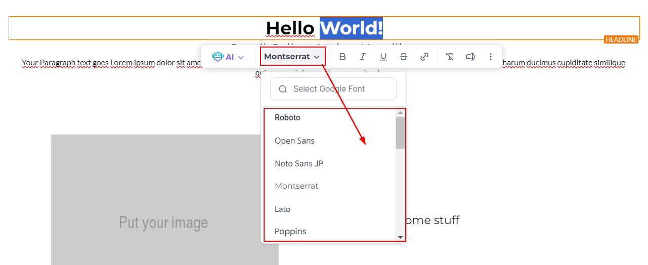 To modify the font of any highlighted text, simply choose your desired style from the dropdown menu.
