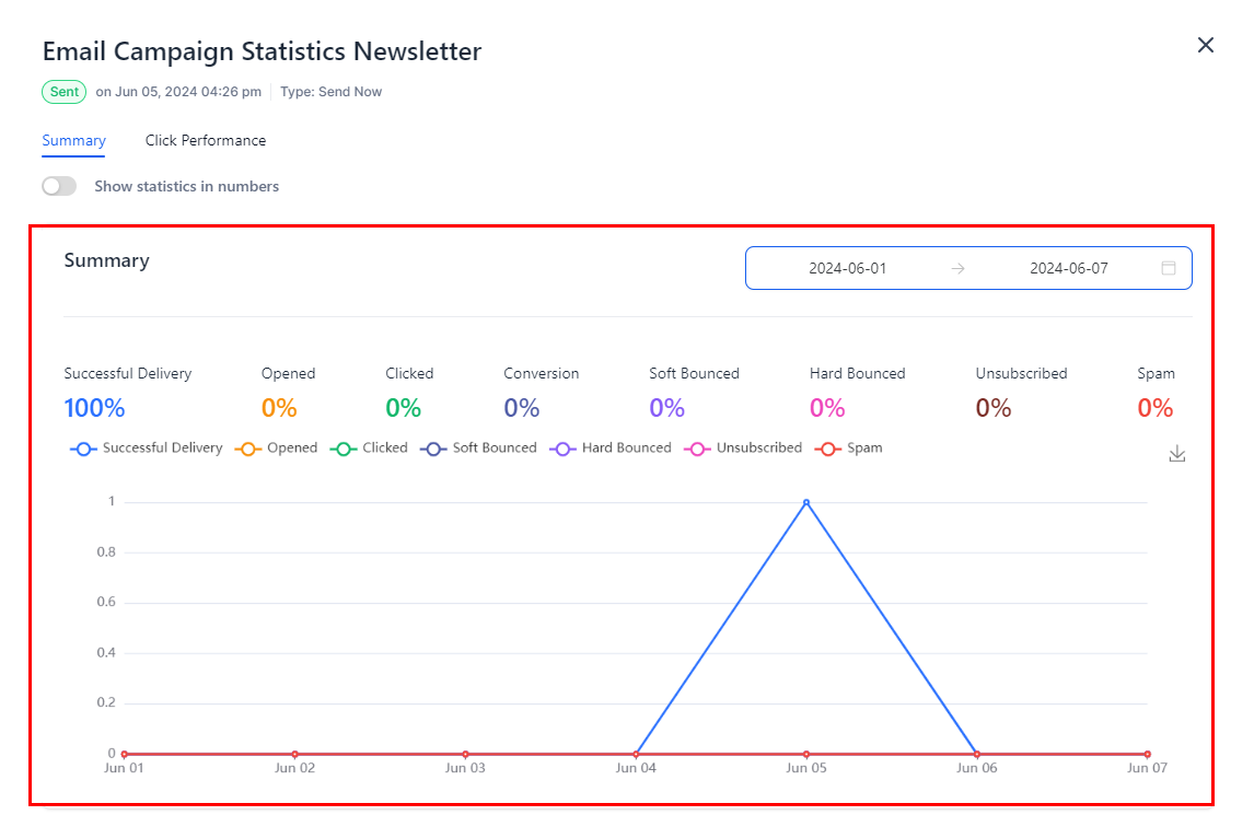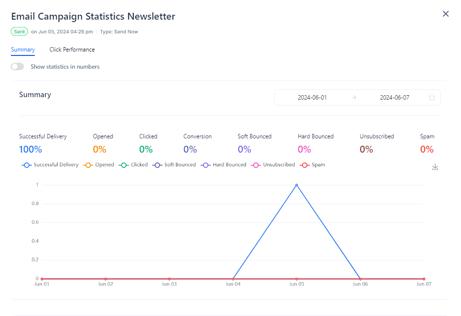 • Unsubscribed: Tracks how many recipients opted out of receiving further emails, which provides feedback on the relevance and frequency of your campaigns.