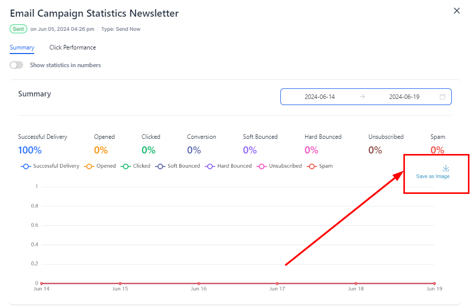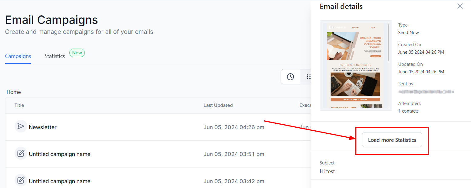 1. Inside the campaign, click on the Statistics tab.