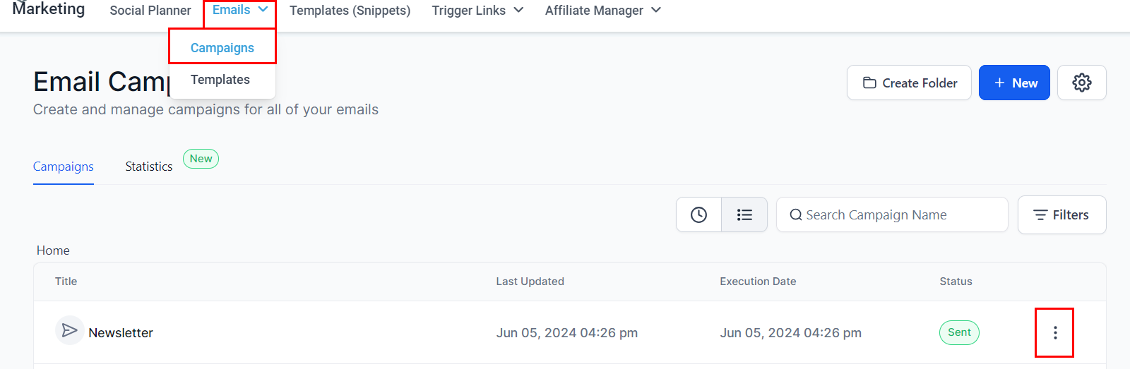 2. Select Emails, then click on Campaigns.