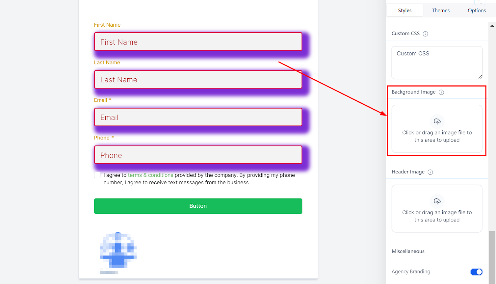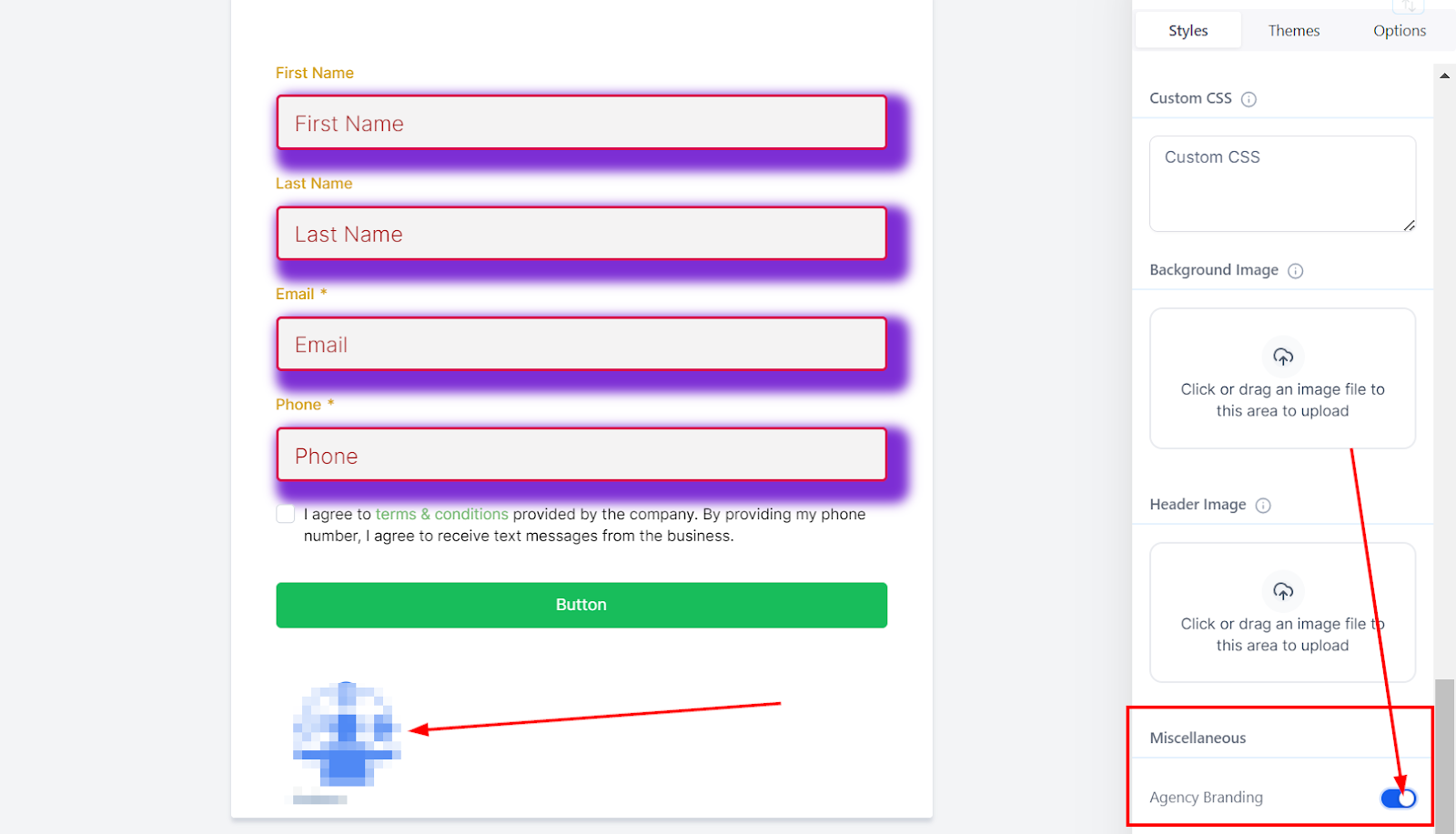In the Miscellaneous section, you can choose whether or not to display agency branding on your form by toggling the option on or off.