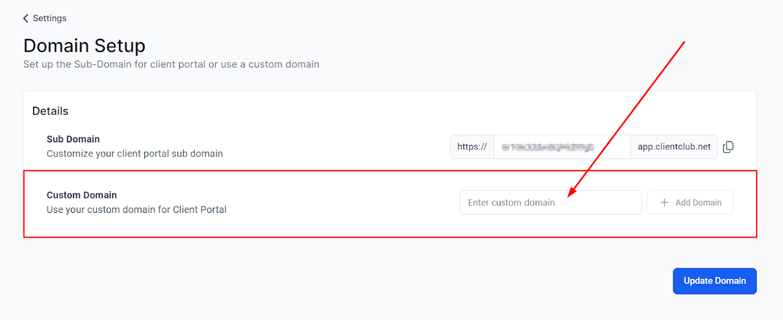 Step 1: Access the Domain Setup in the Client Portal