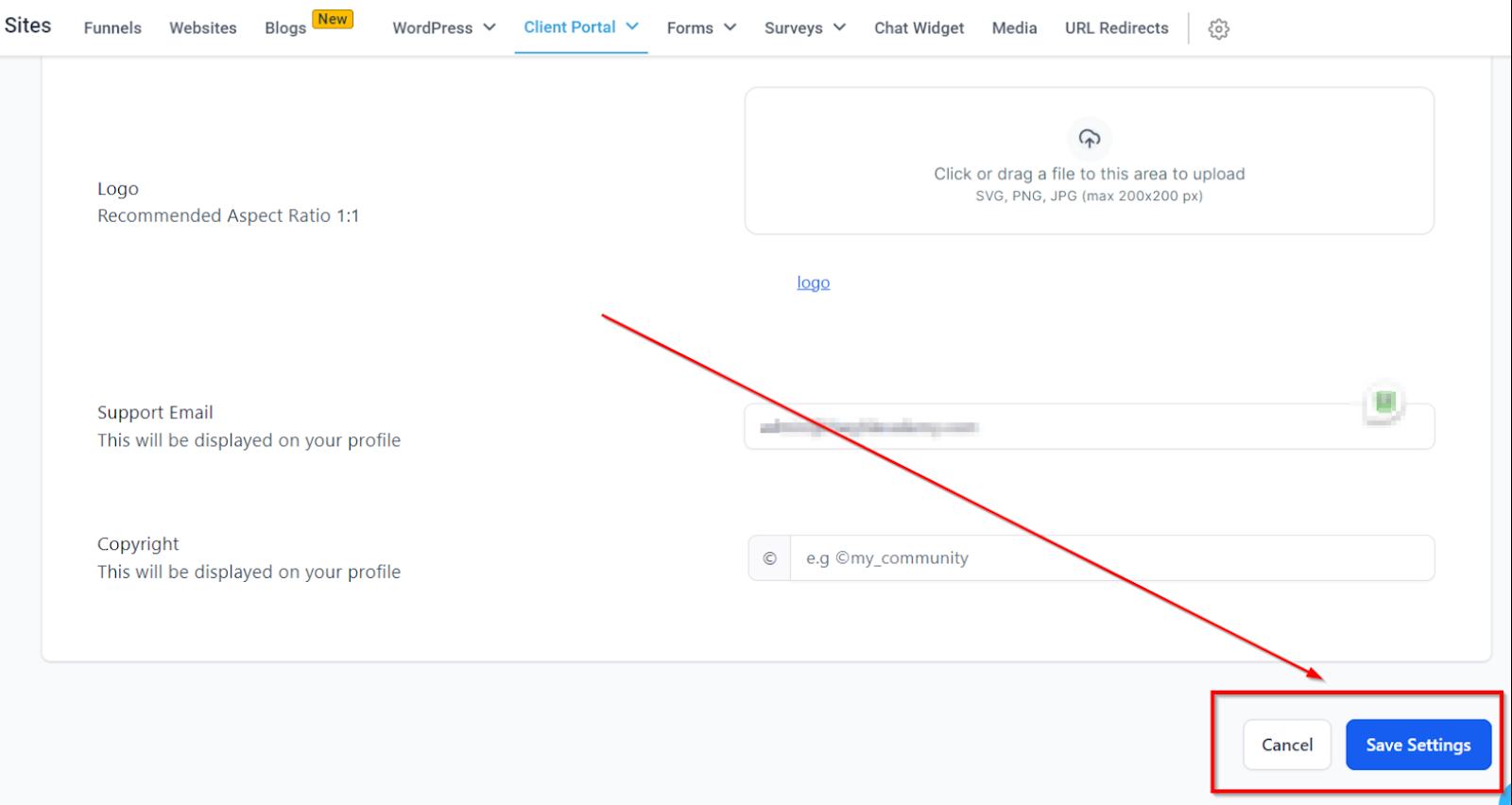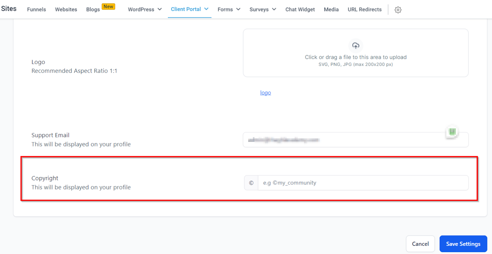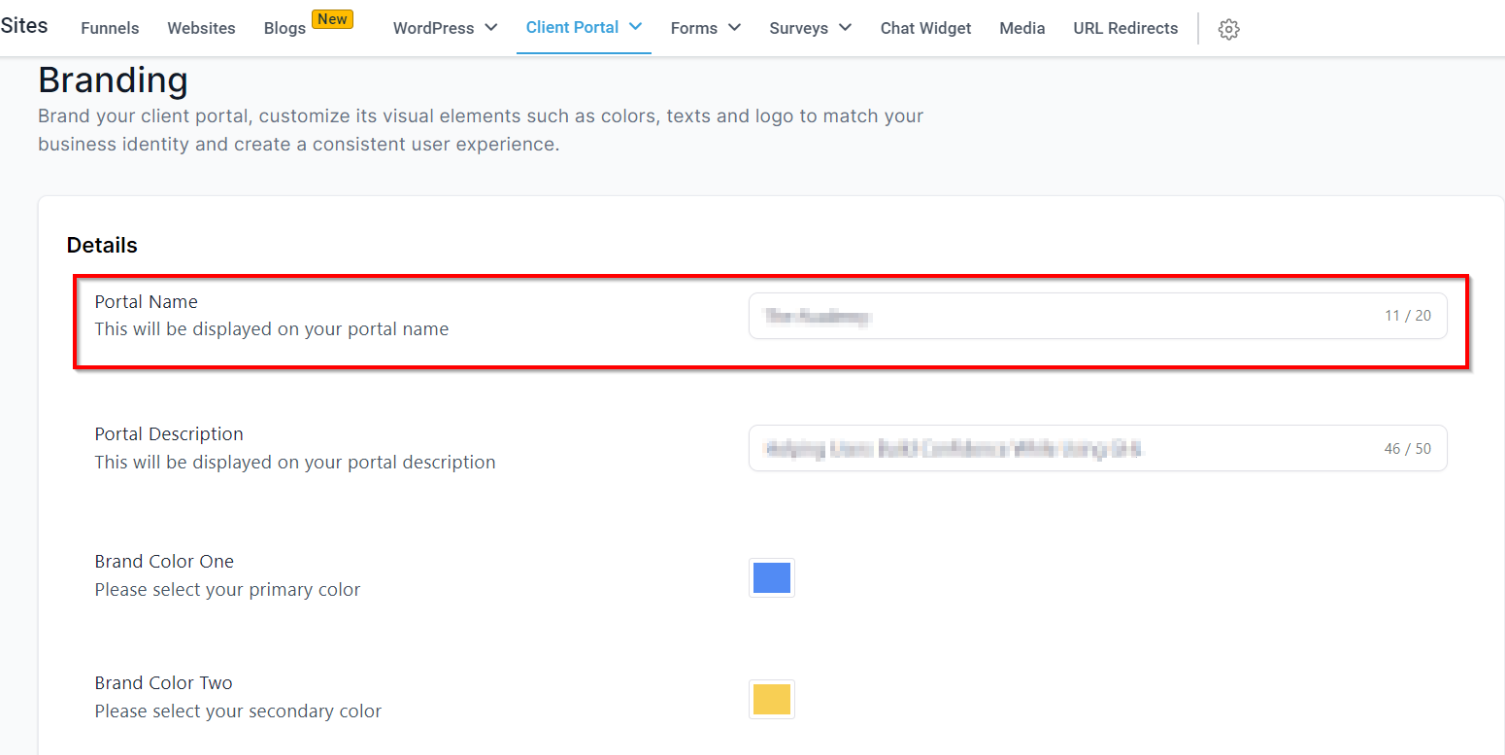 • Portal Title: Enter the name you want to display on your portal.