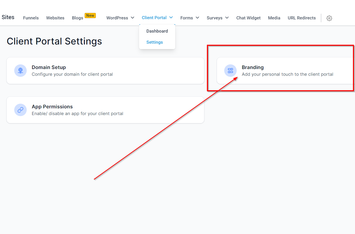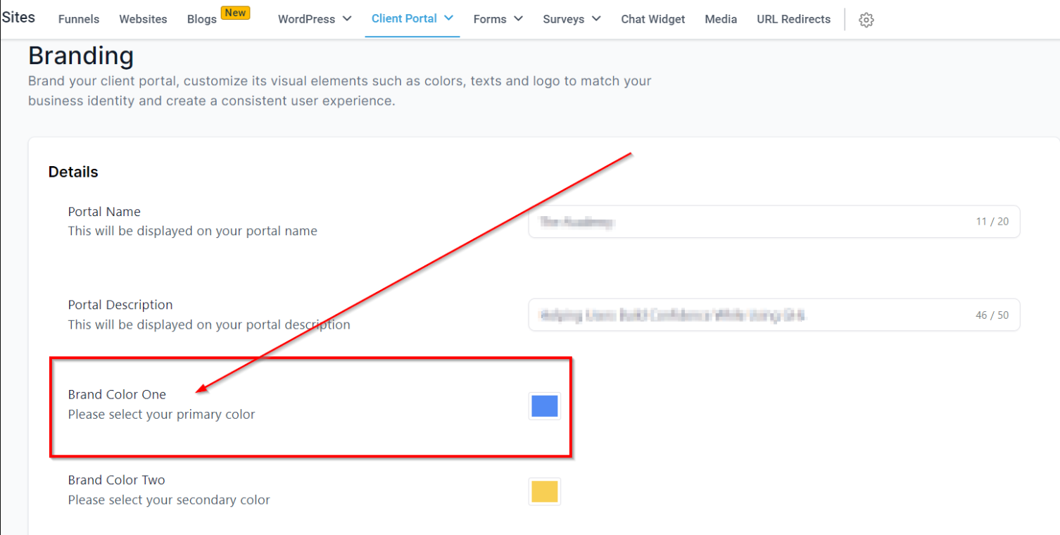 To start customizing, go to the "Client Portal" settings and click on "Branding."
