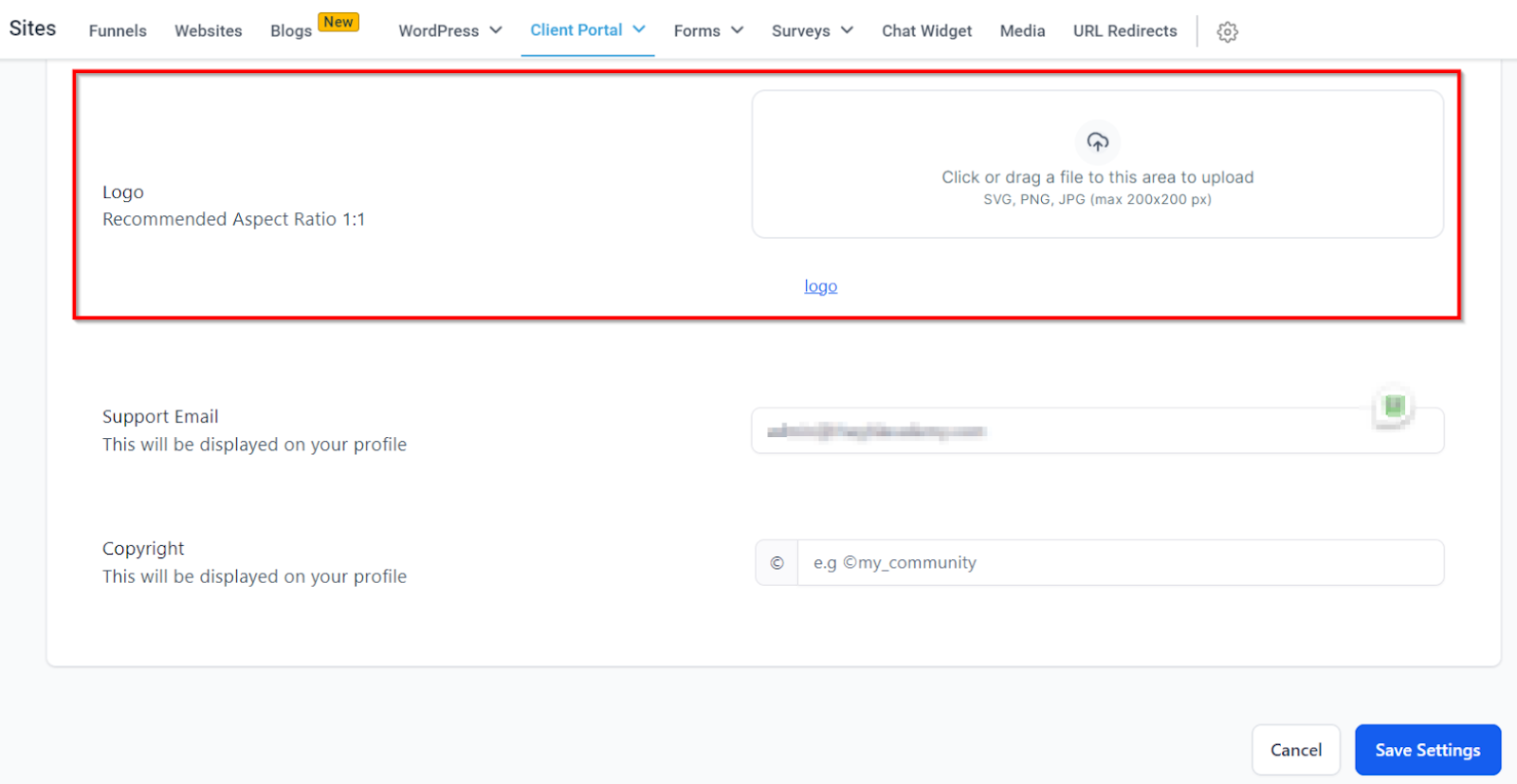 • Upload Your Logo: Add your logo (up to 200x200 pixels) to be displayed prominently on the portal.