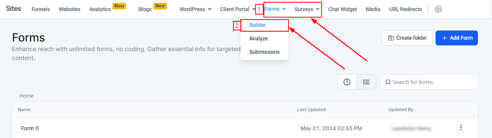 Accessing the Forms and Surveys Builder:
