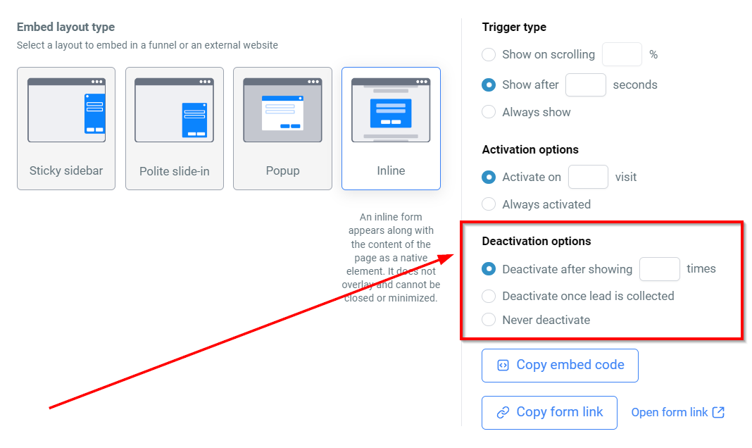 - Deactivate after X Views: The form will stop showing after it has been displayed a set number of times.